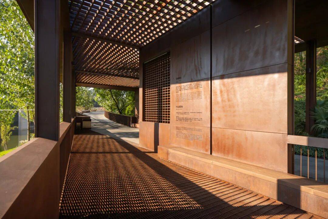 悬挑观景台:360°观景台俯瞰麓溪湖全景,框景手法强化视觉通透性。