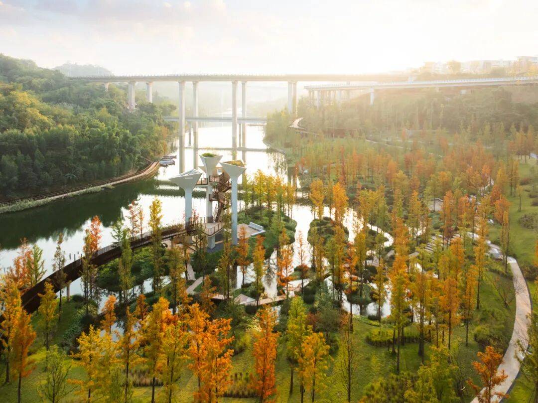 结语:原滩公园是重庆山地景观的一次“温柔革命”。它未选择征服自然,而是以谦卑的姿态融入场地肌理,用生态修复、文化转译与体验设计,让一块复杂地形焕发出复合多元的生命力。这里不仅是市民的休闲乐园,更是一座关于“如何与自然共生”的活体博物馆——正如设计团队所言:“让自然接管最后的深化设计,让每一季草木的枯荣,都成为场地的一部分。”
