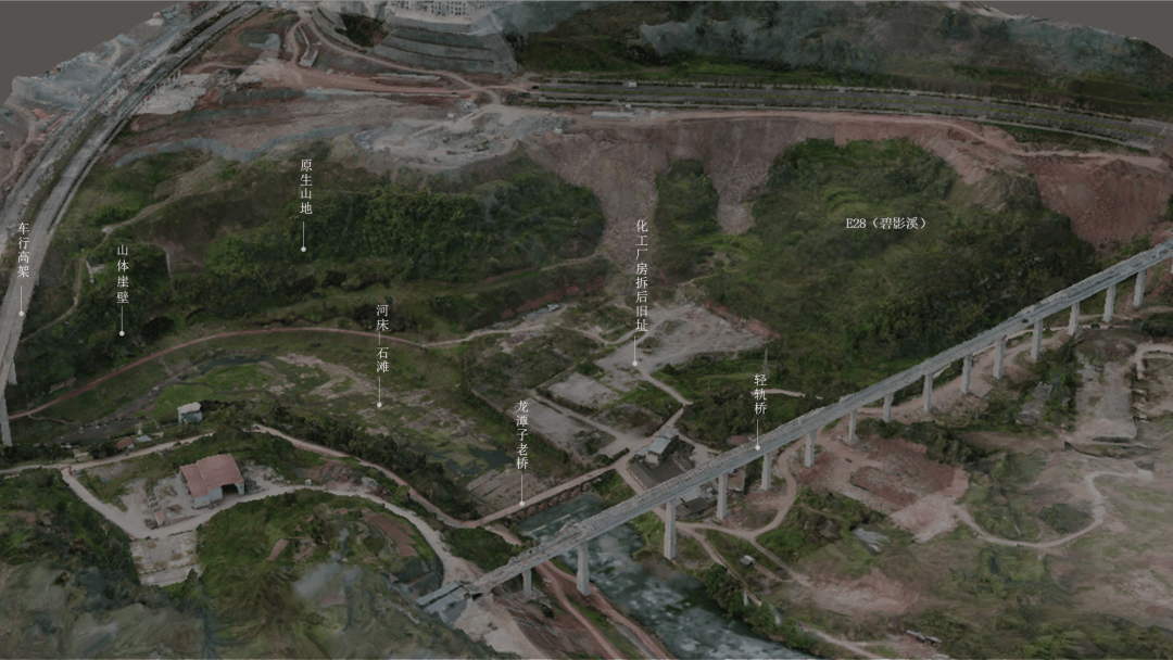 山地与湿地的冲突:场地最大竖向高差达68米,陡峭崖壁与枯水期裸露的河床形成强烈对比,水流冲刷的“壶穴”地貌与高架桥的轰鸣、废弃工业遗址的沉寂交织,构成新与旧、动与静的张力。
