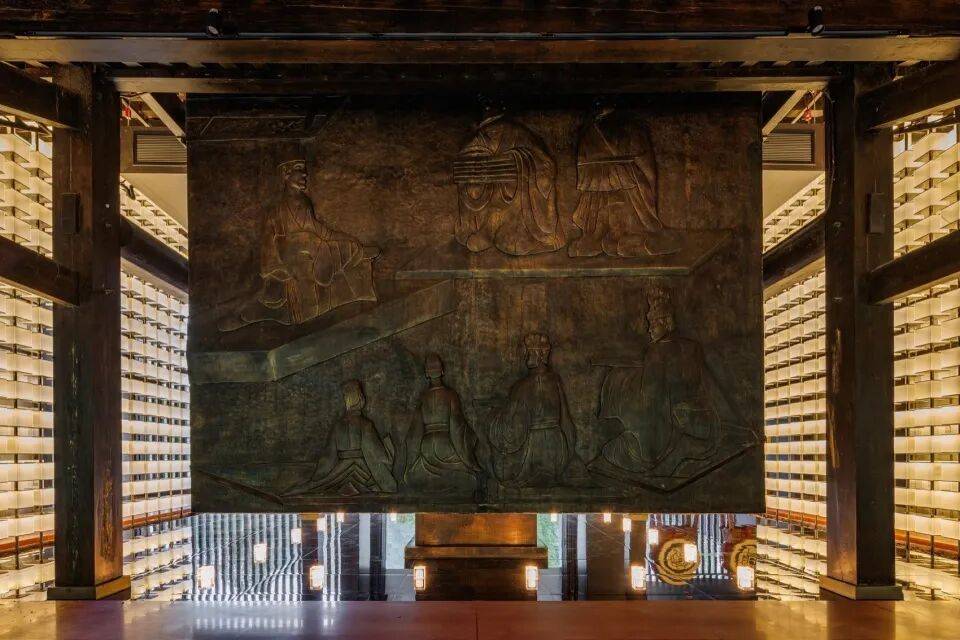空间仪式:入口压低,需趋步向前方可瞻仰文翁铜像,强化尊崇感;