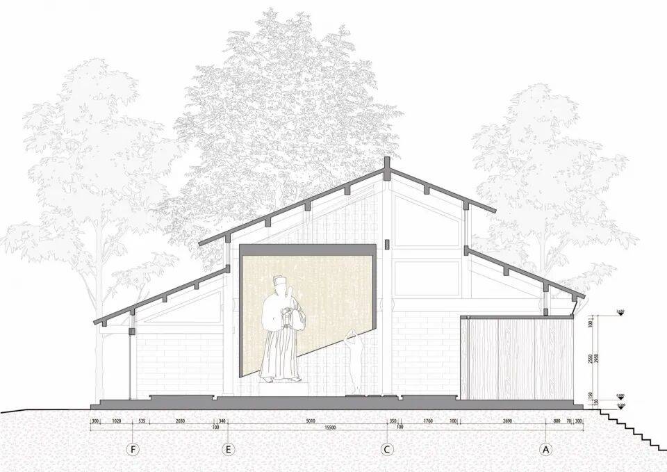 四柱三间两跨制式,隐喻“拜访先贤”的仪式感;
