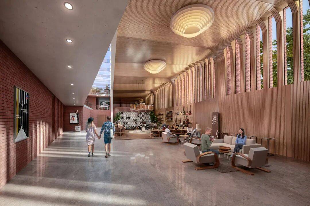 设计灵感:借鉴历史市政厅设计语言,融入音乐厅、创作工作室和儿童音乐教育等现代功能。