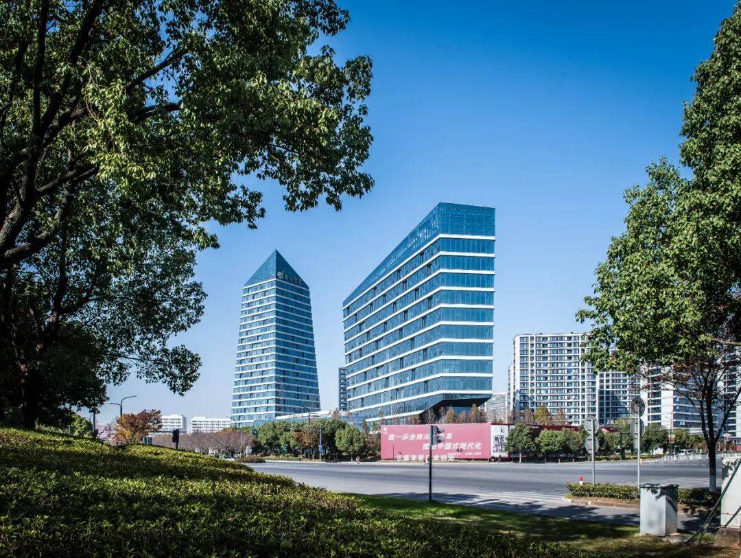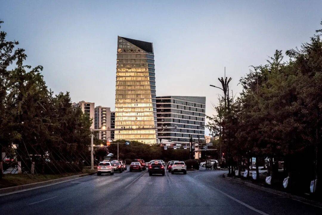 当阳光照射在精心设计的几何形体上时,建筑表面产生微妙的光影渐变,着重突出其现代质感。这种设计既是对古塔垂直线条传统的现代转译,又是金兰创新城面向未来的精神气质体现。