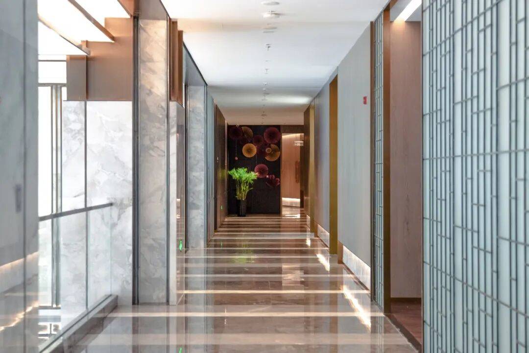 功能分区:酒店与公寓共享底层商业配套,设置独立出入口,保障居住私密性;酒店客房沿环形排布,均具备江景或城市景观视野。