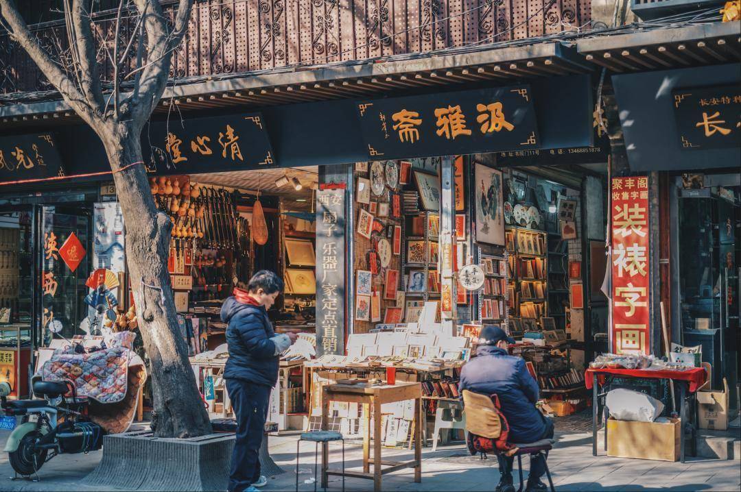 西安最出名的古玩街是书院门,就在碑林博物馆旁边。