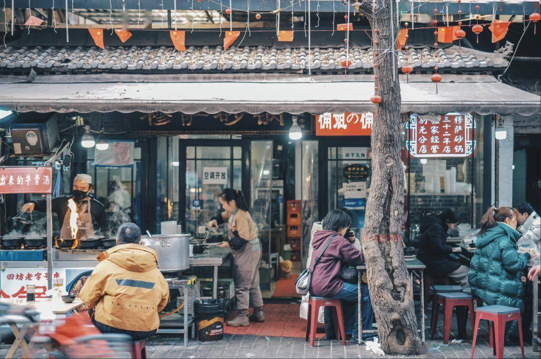 回民街:游客必访但本地人更推洒金桥(马二酸汤饺子)、大皮院(定家小酥肉)。