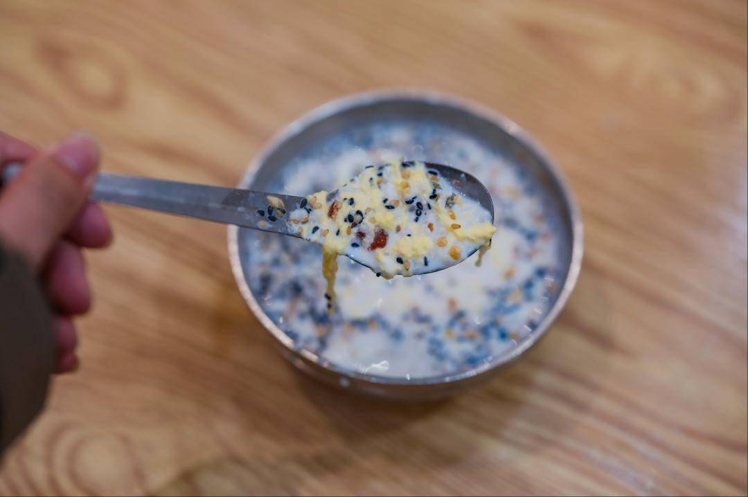 招牌是牛奶鸡蛋醪糟,现点现做,奶香浓郁,配上芝麻、花生碎和葡萄干,清甜爽口。