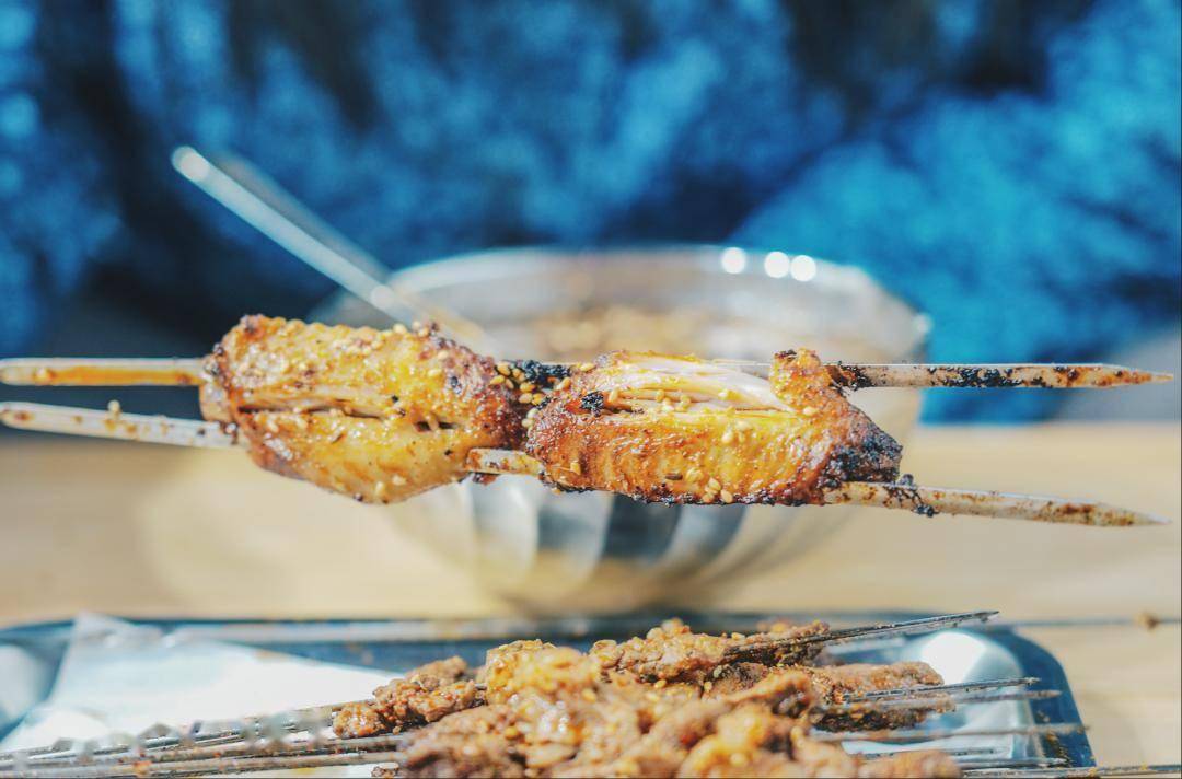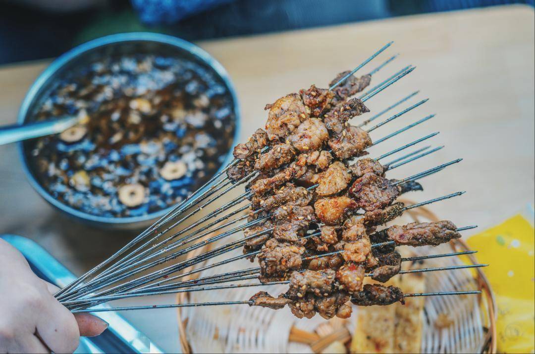 招牌是烤羊肉串和烤筋,肉串肥瘦相间,搭配冰峰汽水或者酸梅汤,解腻又过瘾。