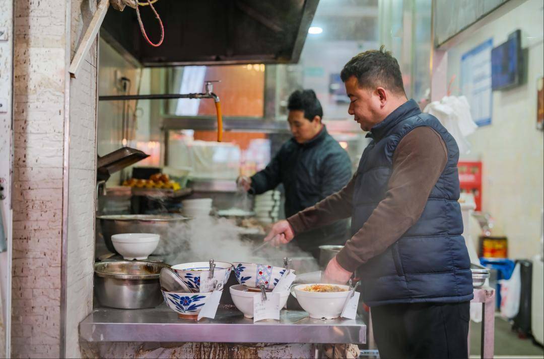 永兴坊:非遗美食集合地,子长煎饼、泾阳茯茶现做现卖。