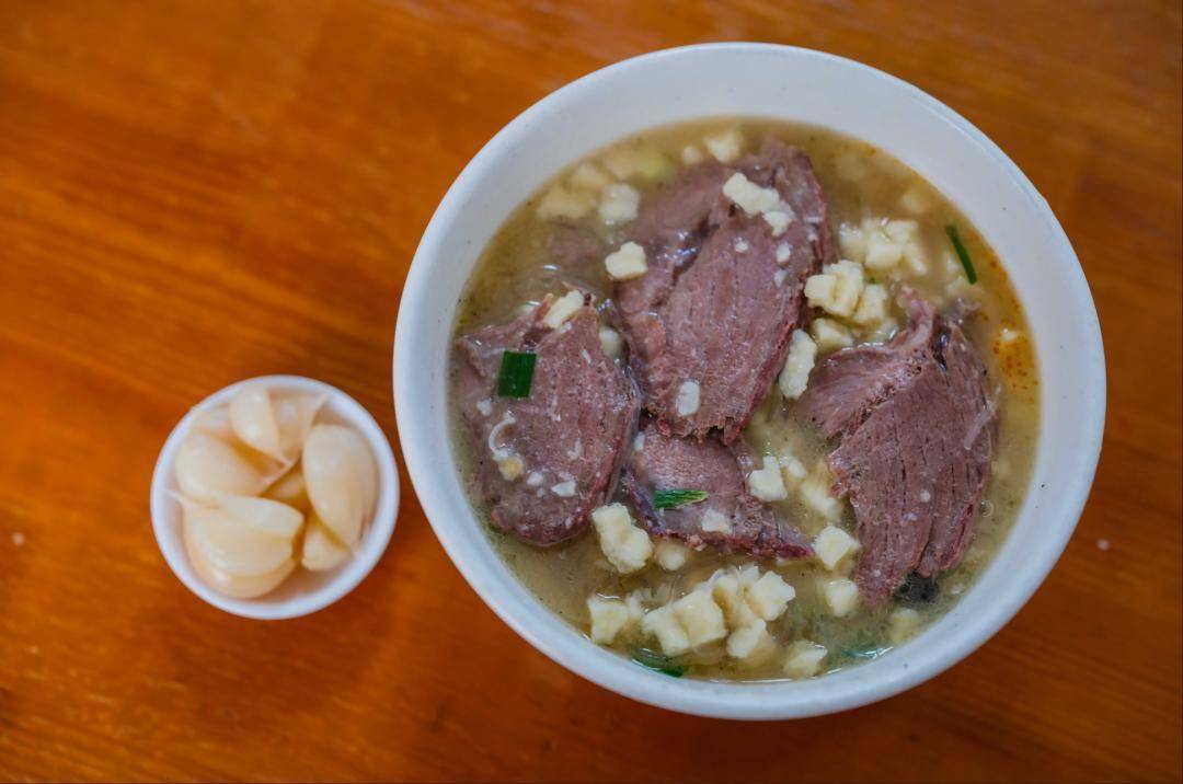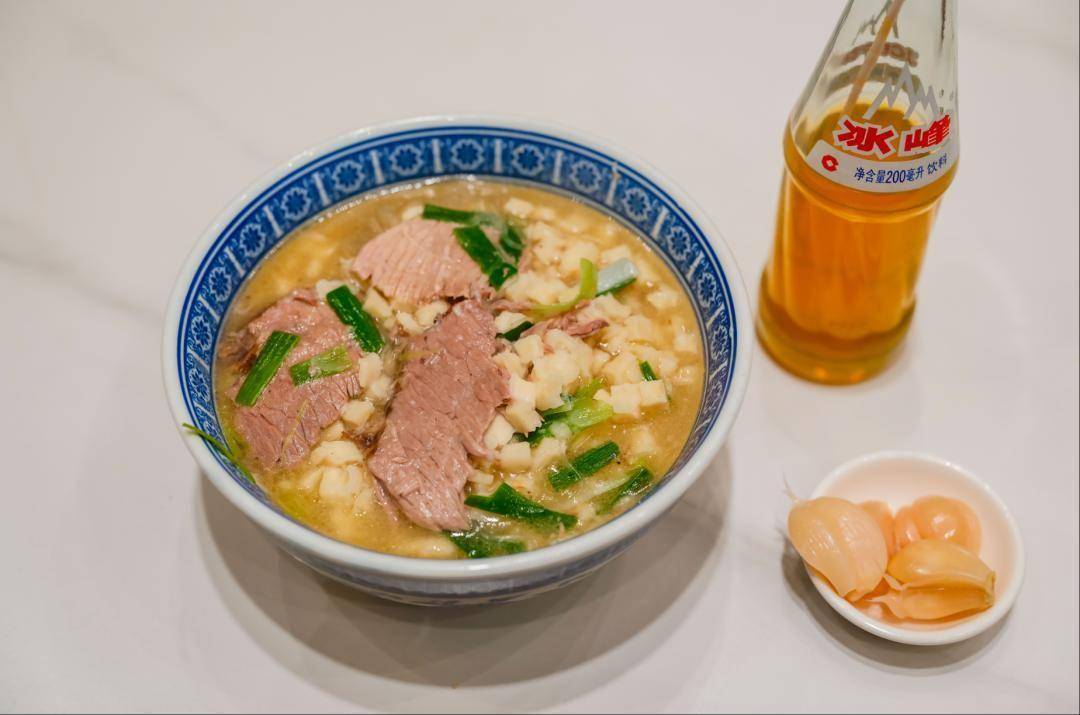 这家的招牌是牛肉泡馍、羊肉泡馍的,整体酸辣口味,肉量很足。下图是我们点的牛肉泡馍,23元一份,看看这牛肉的用料量,真的是良心。