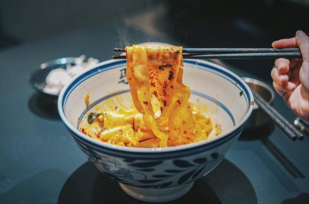 Biangbiang面:三根面条一碗装,油泼辣子"滋啦"一响,宽如裤带韧如筋。