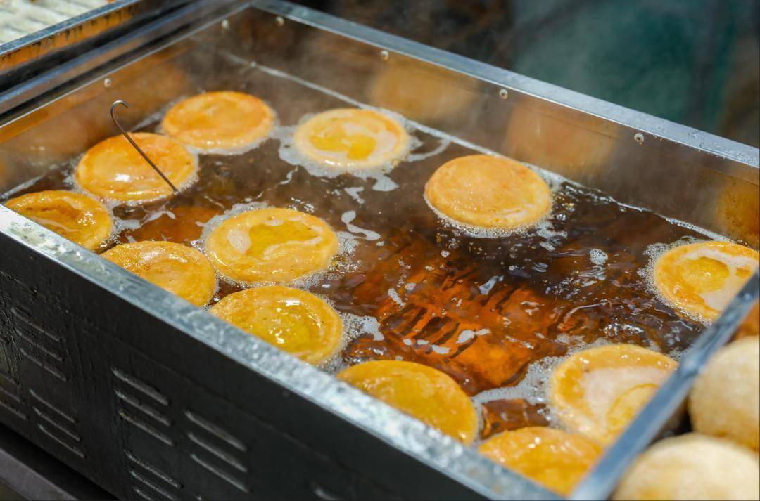 是现炸的,外酥里糯,柿子味很浓,一定要趁热吃,凉了就有点油了。