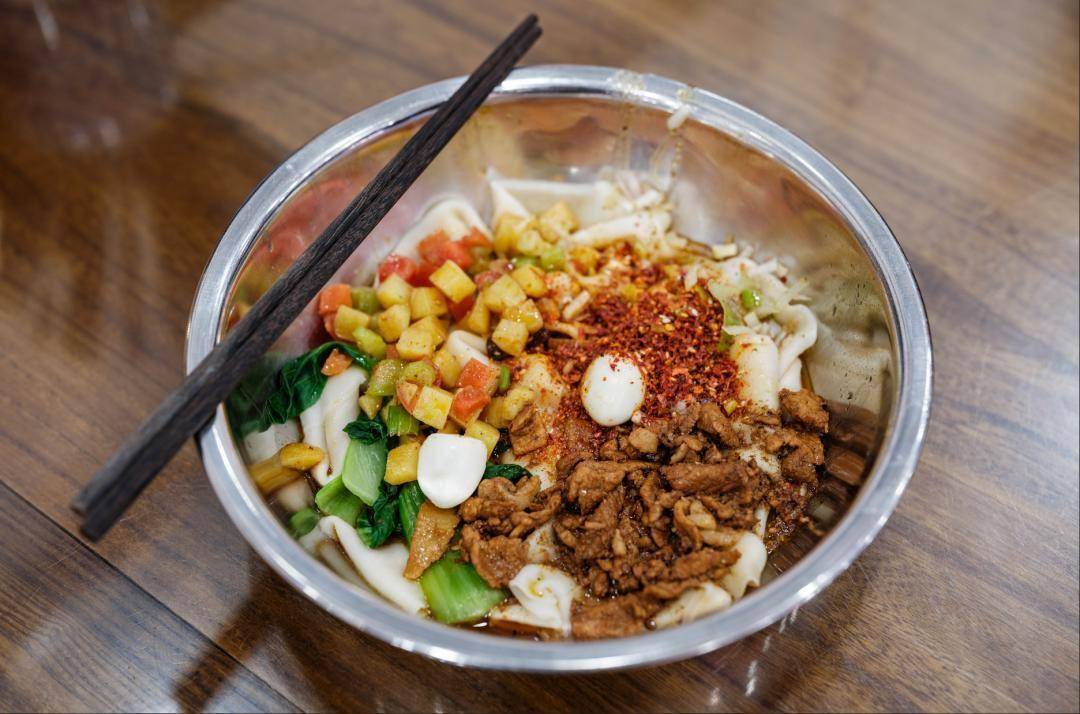 Biangbiang面:关中面食的代表,面条宽厚如“裤带”,手工拉扯而成,煮熟后淋上油泼辣子、蒜末、酱油,口感劲道,香气扑鼻,“biang”字的写法更是充满趣味(相传是因制作时面条撞击案板的声音而得名)。