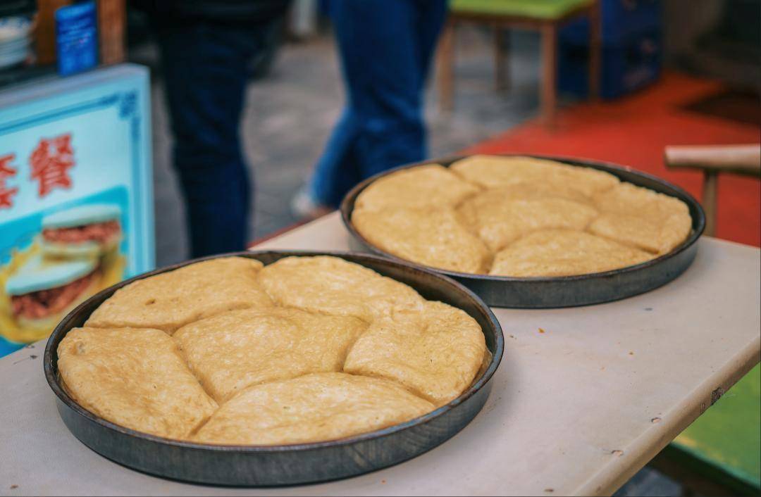 每天清晨六点就开始排长队的蛋菜夹馍,看似简单,实则工序繁复。
