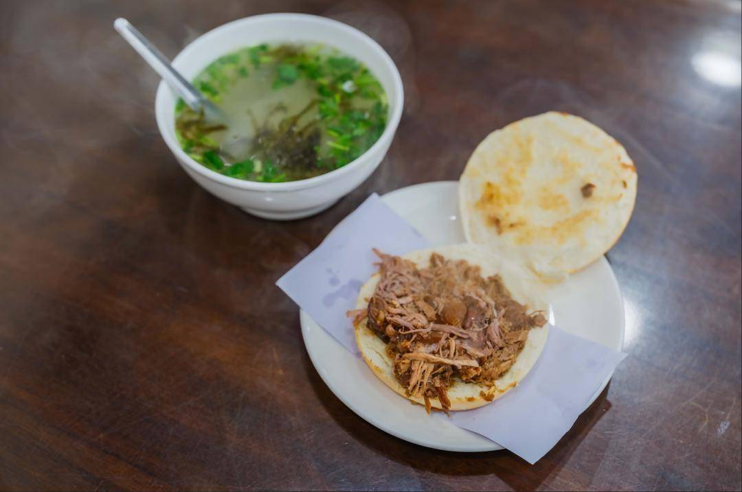 肉夹馍:“中国汉堡”,外酥里嫩的烧饼夹着慢炖的腊汁肉(用多种香料炖数小时),肉质紧实,肥而不腻,咬一口满是肉香,是西安的“街头名片”。
