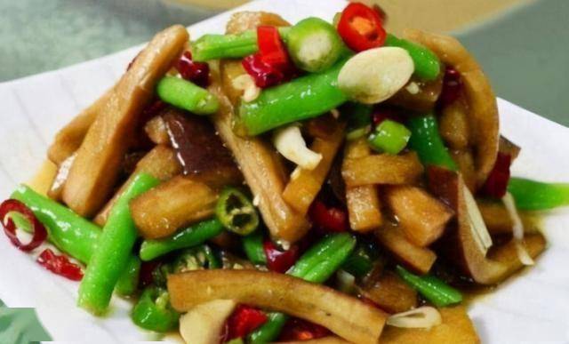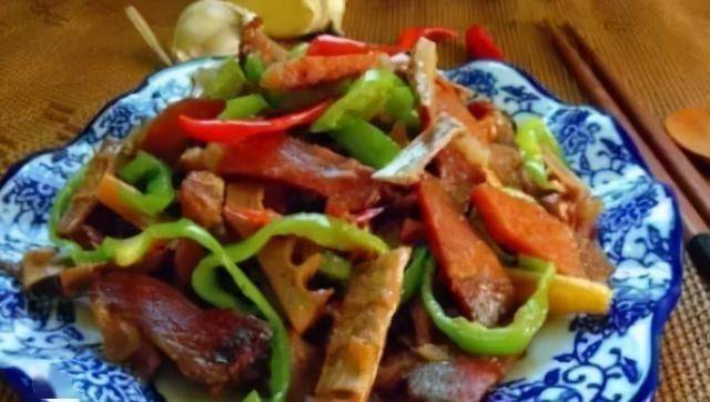 材料:熏肉200克,竹笋50克,青蒜30克,红辣椒15克,小米椒15克。5克油,25毫升生盐,适合大豆吃
