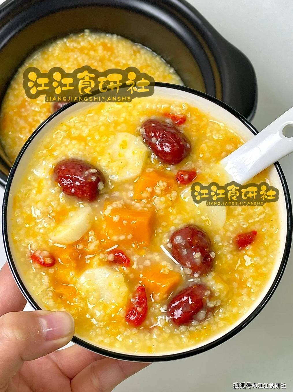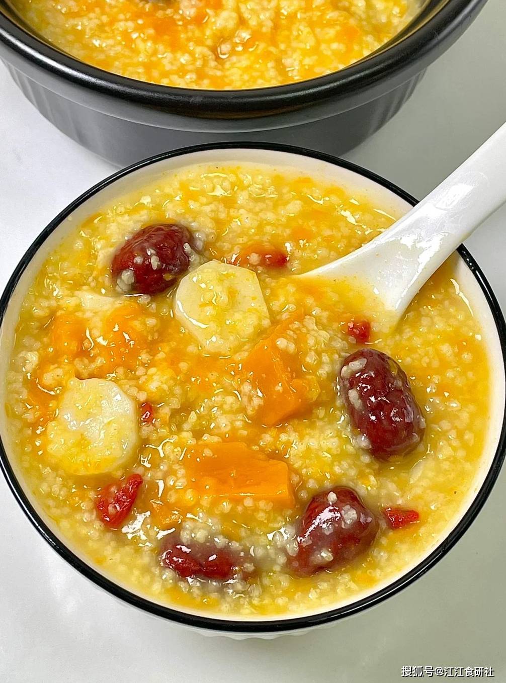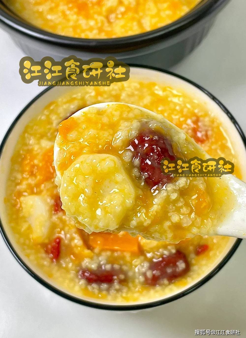 二、温和滋润的“南瓜山药小米粥”:养胃润肤,米油香浓