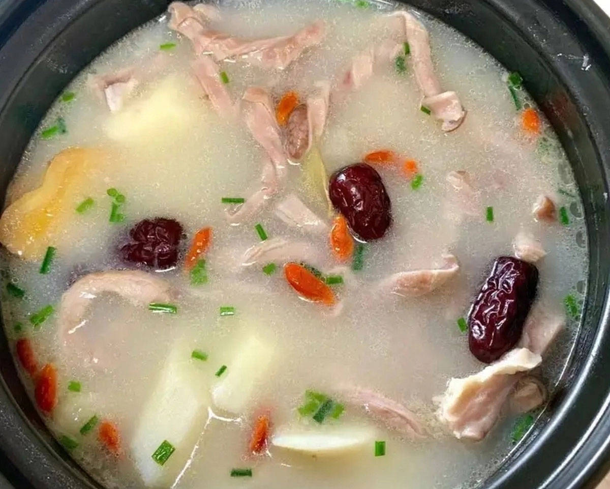 加开水炖煮1小时,最后放入山药焖30分钟,确保汤浓肉糯。