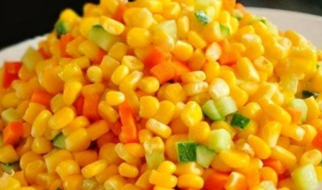 2. 炒香玉米和胡萝卜,加盐、糖、鸡精调味。