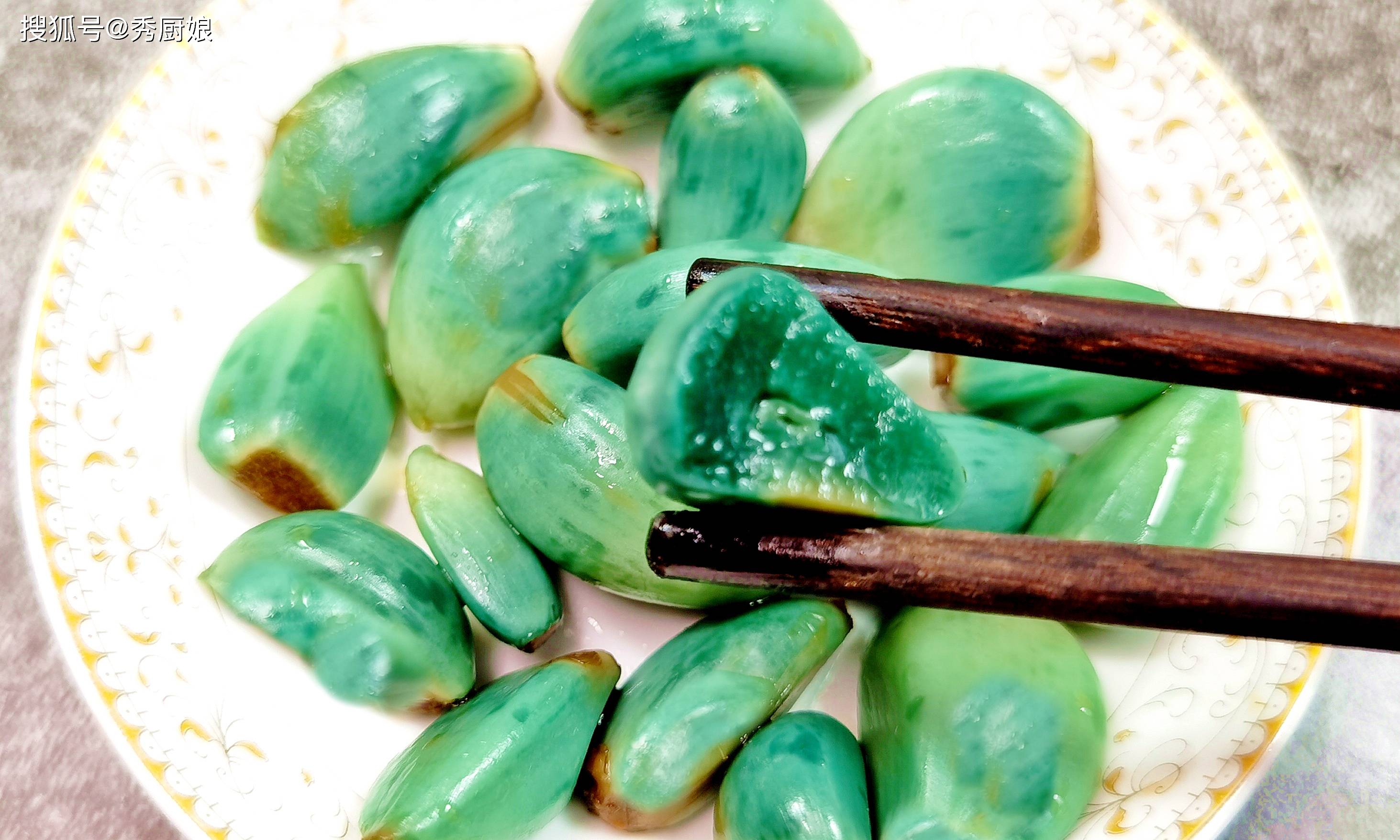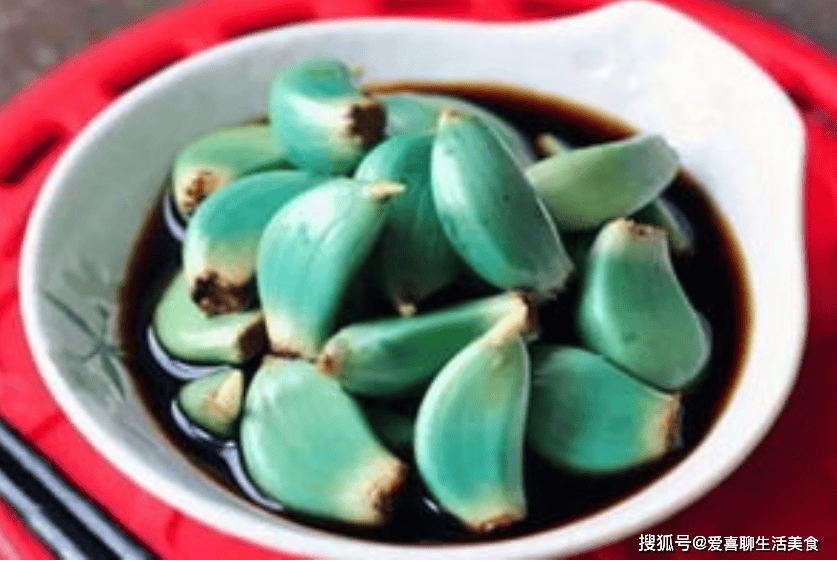 4. 24小时后观察,蒜瓣开始变绿;48小时后基本全绿,全绿后可以一直放在冰箱冷藏,随吃随取