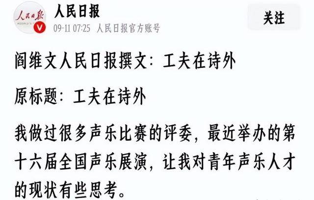但在风口浪尖上,给版面、发文章,而且内容完全跳过了眼前的烂摊子,直接拔高到民族声乐传承和青年人才培养的宏观层面。