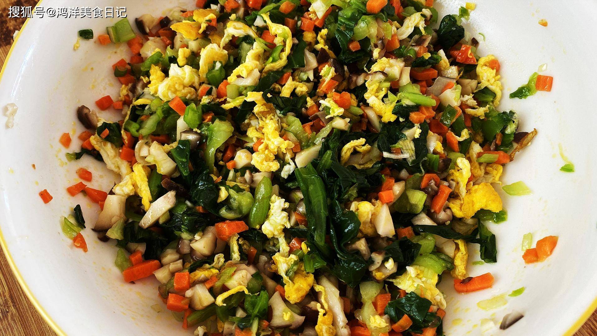 低脂版:免炒鸡蛋,直接生蛋液拌入馅料。