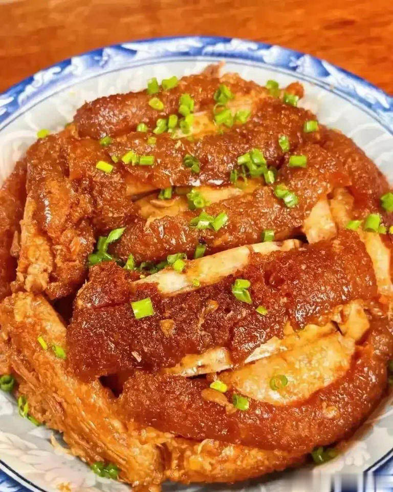 5. 取出蒸好的粉蒸肉,撒上葱花即可。