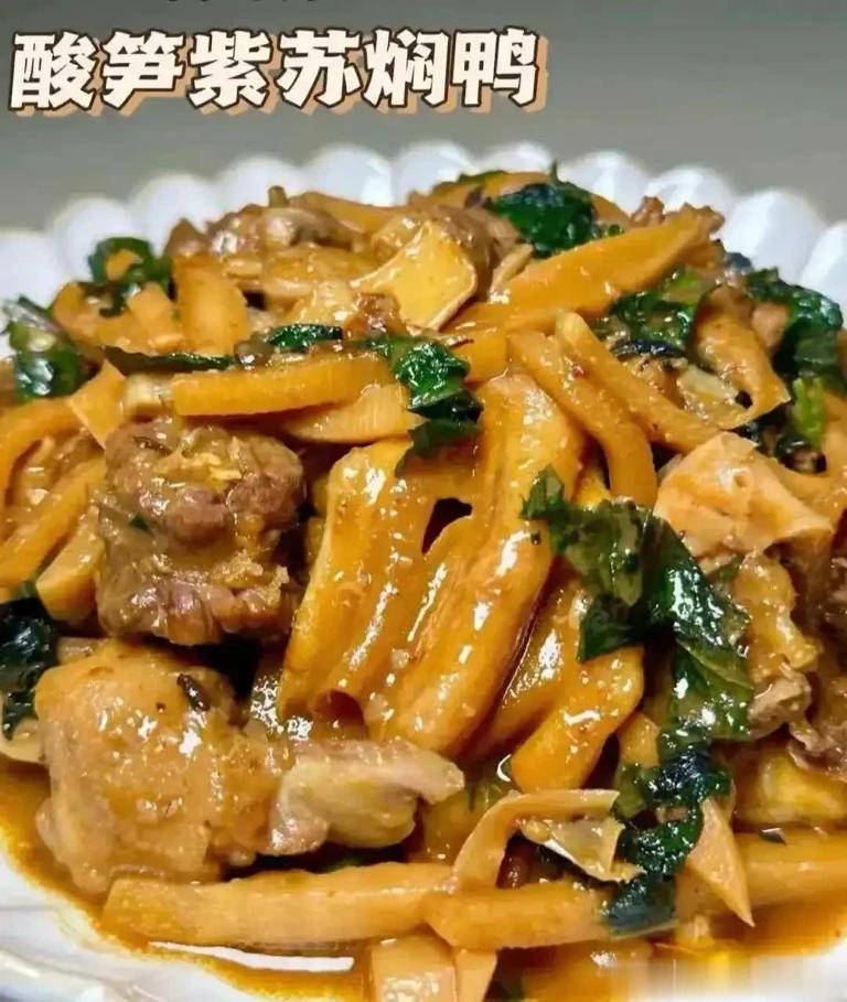 酸笋紫苏焖鸭:鸭肉+酸笋/紫苏