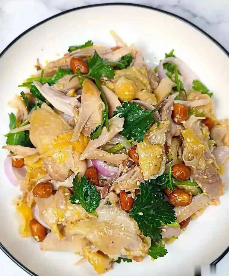 1. 鸡肉洗净,生姜切片,大葱切段。锅中加水,放入姜片、葱段和鸡肉,加入 1 汤匙料酒,大火煮开后转小火煮 15 - 20 分钟,至鸡肉熟透,捞出放入冰水中浸泡片刻,捞出沥干,用手撕成丝。