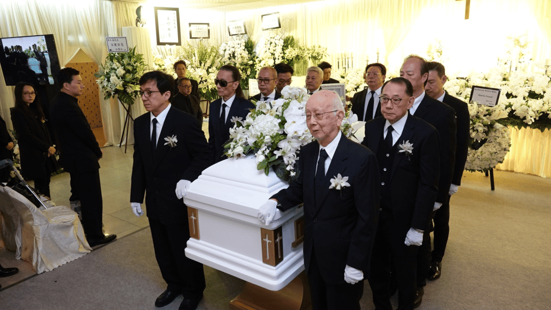 ▲ 2017年陈自强去世,扶灵的有成龙、张学友、谢贤、狄龙、杨受成、关锦鹏、邹文怀等。