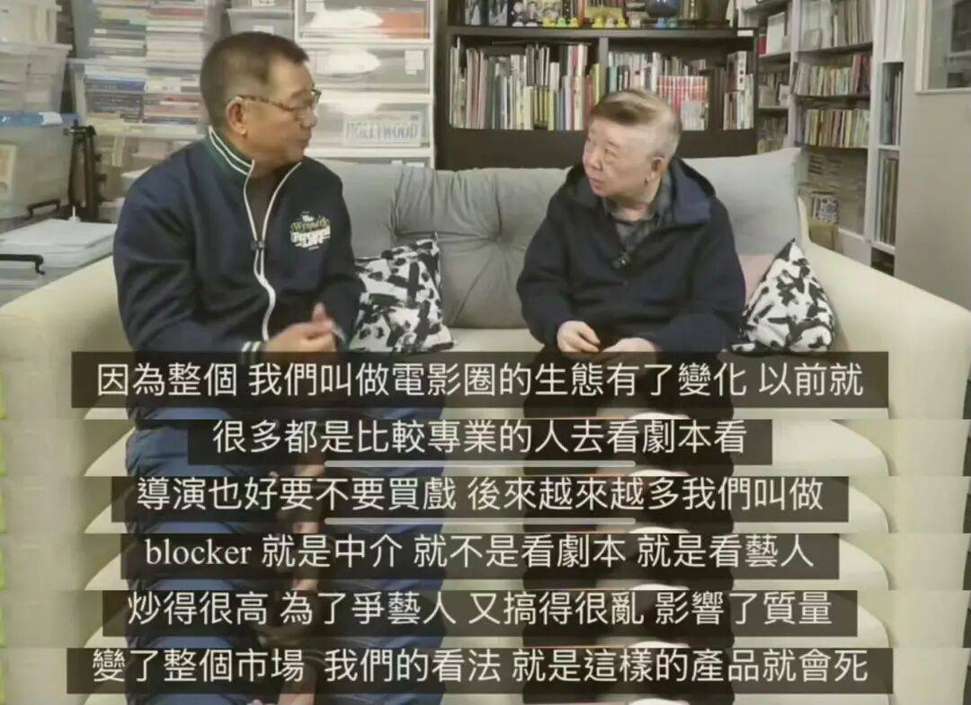 ▲ 叶伟忠也是艺能创始团队成员之一,他上文隽的访谈节目,说他们最爱的其实是电影,从1986年到1996年一共拍了34部电影。但后来电影圈生态变了,他说:以前人比较专业,要看剧本、看导演,后来更多中介进来,主要看艺人,艺人火就叫座,为了争艺人又涌现很多乱象,最终影响电影质量。他们认为这样的产品会死,怀疑自己可能跟时代脱节了,无奈收手。