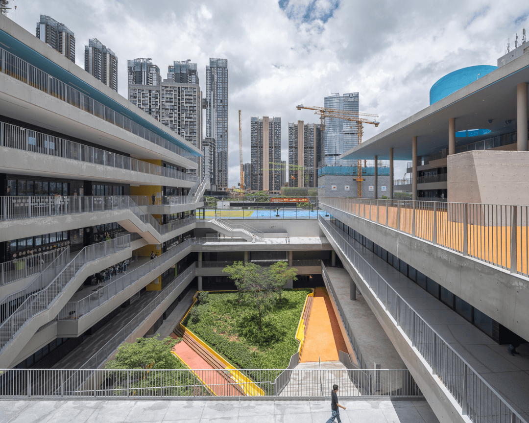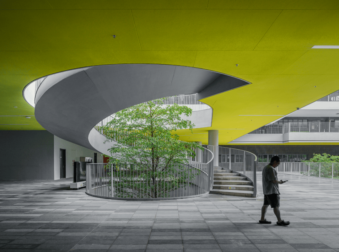 嵌入城中村的校园,延续了新洲社区“生活偶然性、社会多样性”的特质:设计弱化过度管控,以开放、灵活的空间鼓励自发行为——学生在平台奔跑、庭院交流、角落阅读,空间与行为形成良性默契,使校园成为“超级城市宏伟叙事下,细腻而坚韧的日常生活原力”的缩影。