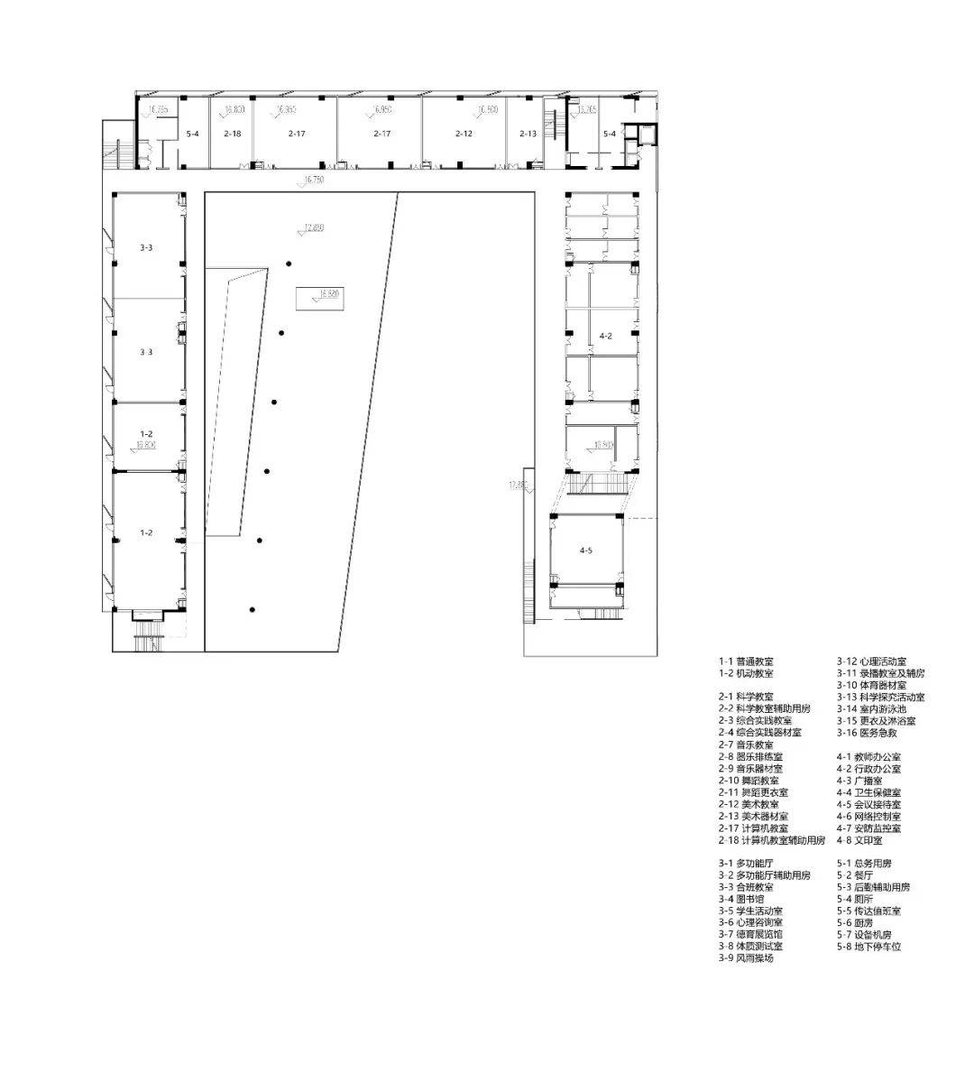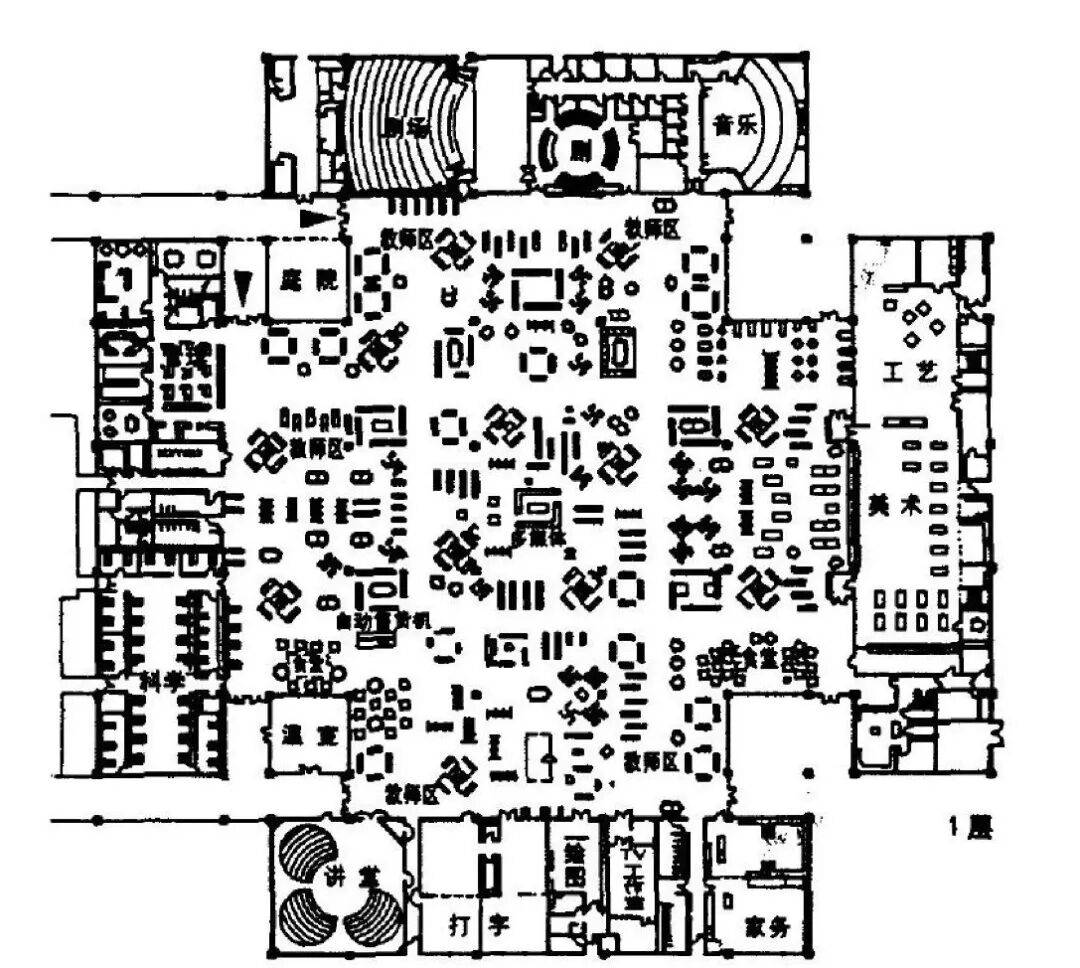 中央庭院:作为视觉焦点与活动舞台,连接各功能空间,成为集会、展览、课余互动的核心场所,实现“开放教育”理念的空间具象化。