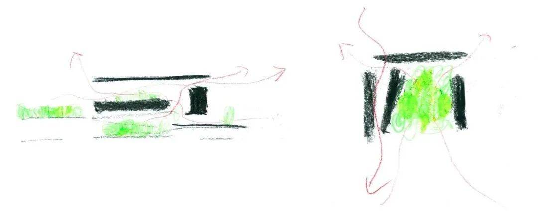 风道与遮阳:错落的建筑开口形成自然风道,引导气流穿越建筑群;遮阳设施与绿植结合,降低能耗的同时,创造舒适微气候,让学生直观体验可持续设计的价值。