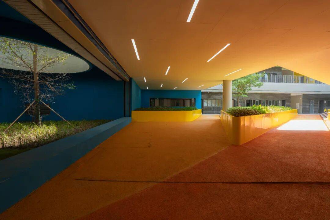 深圳绿洲小学的设计以“开放共享、自然融合、高密度下的空间创新”为核心,在新洲片区商住与城中村交织的复杂肌理中,构建了一所兼具功能性与人文温度的现代化校园,具体设计亮点如下: