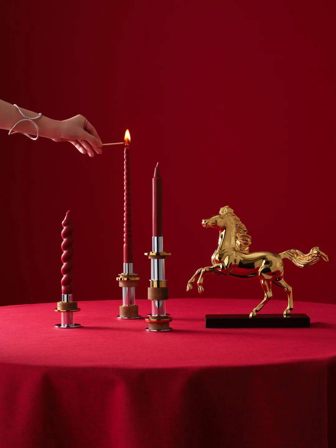 餐桌之上,经典Malmaison马勒梅松城堡系列瓷器餐盘凭借细腻餐瓷与典雅纹饰,成为承载时令珍馐的理想之选;2026马年镀金雕塑静立餐桌,凝练线条勾勒出骏马静中蕴跃的动感;Myriade叠影系列金色烛台渐次生辉;MOOD Asia Dragon龙纹限定版亚洲心境蛋登场;Albi简一系列马年镀银托盘与甜品勺,以利落线条续经典,茶匙与托盘刻骏马纹样,镜面抛光工艺让日用器物成桌面艺术,是融节庆寓意与日常美学的礼赠佳品。跃起新春,以Christofle的银辉金韵相伴,用一桌团圆器物、一份心意好礼,串联起对新岁的美好期许。