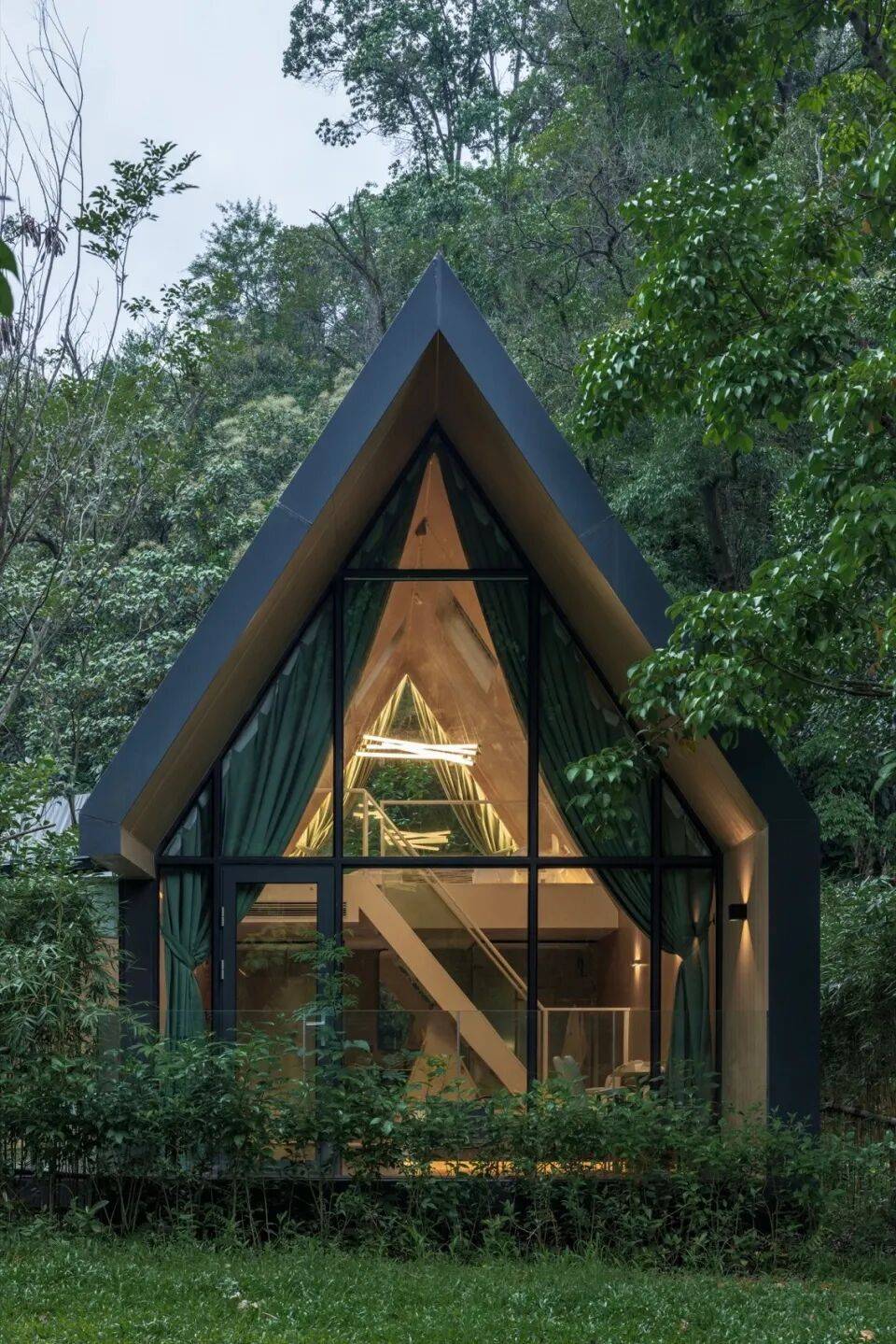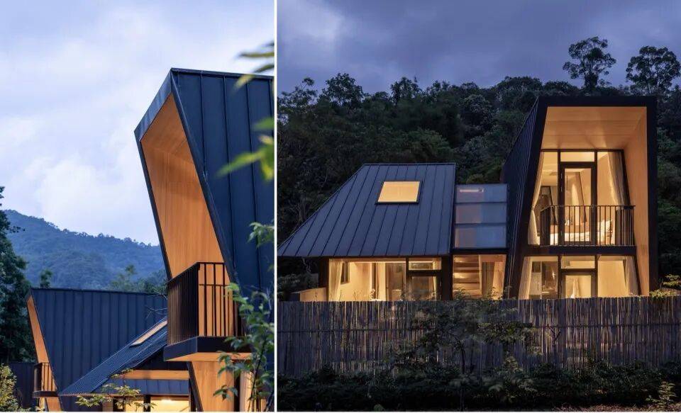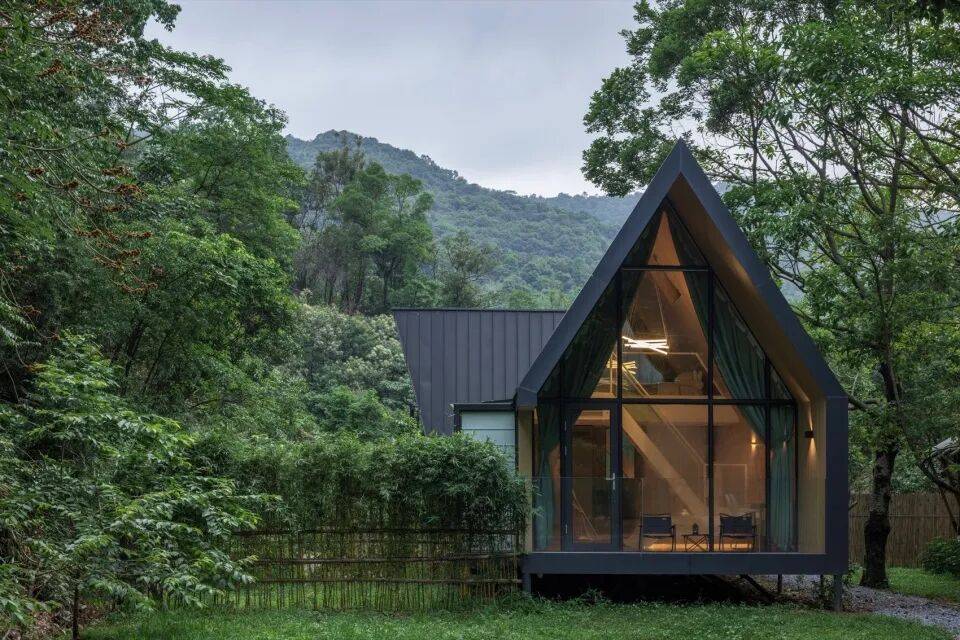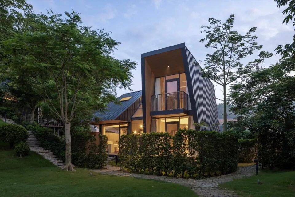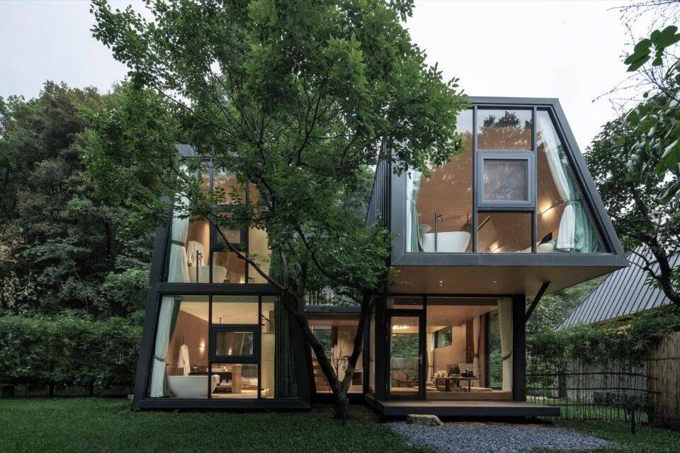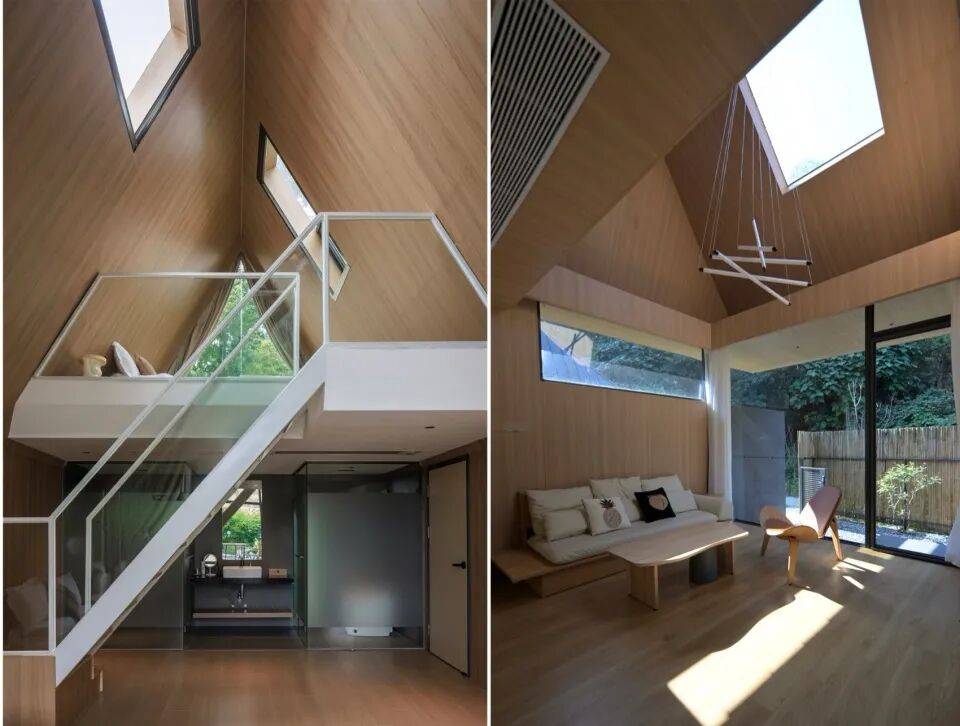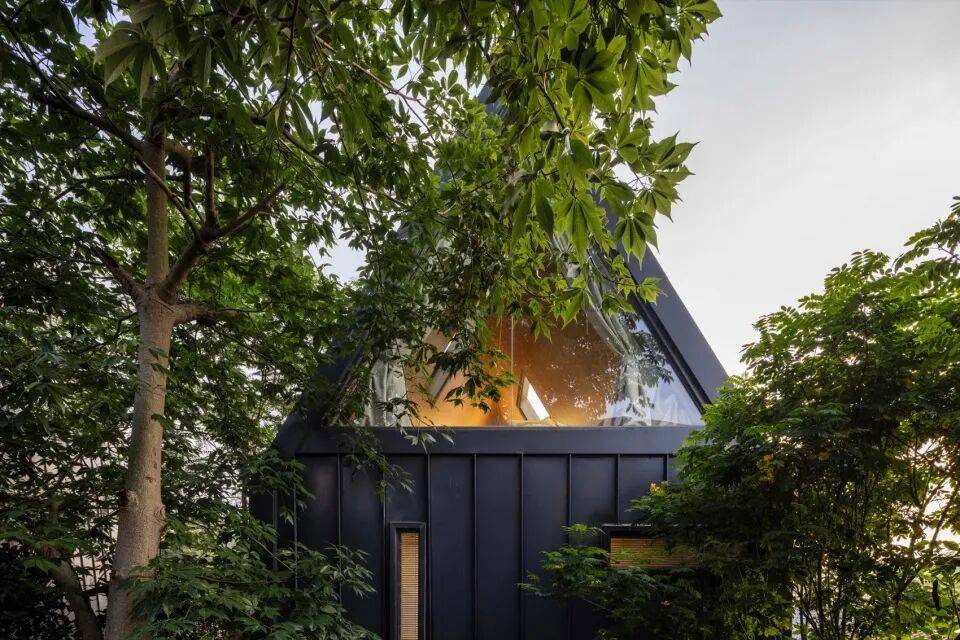 三角几何LOFT树屋:二层落地窗设计,融入森林环境
