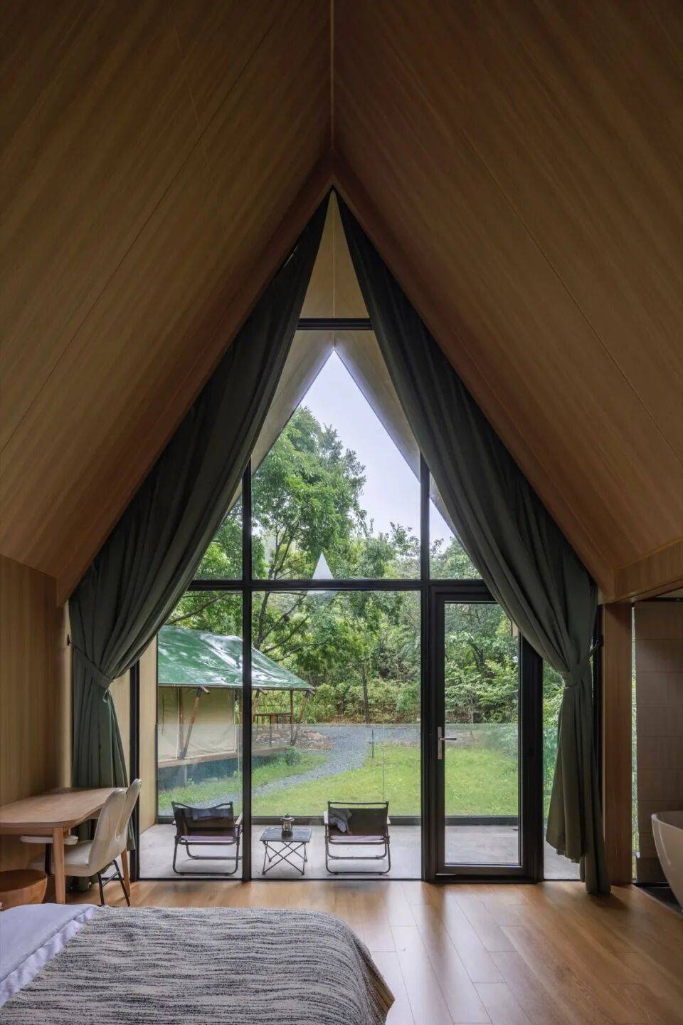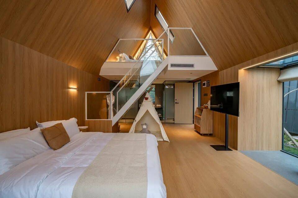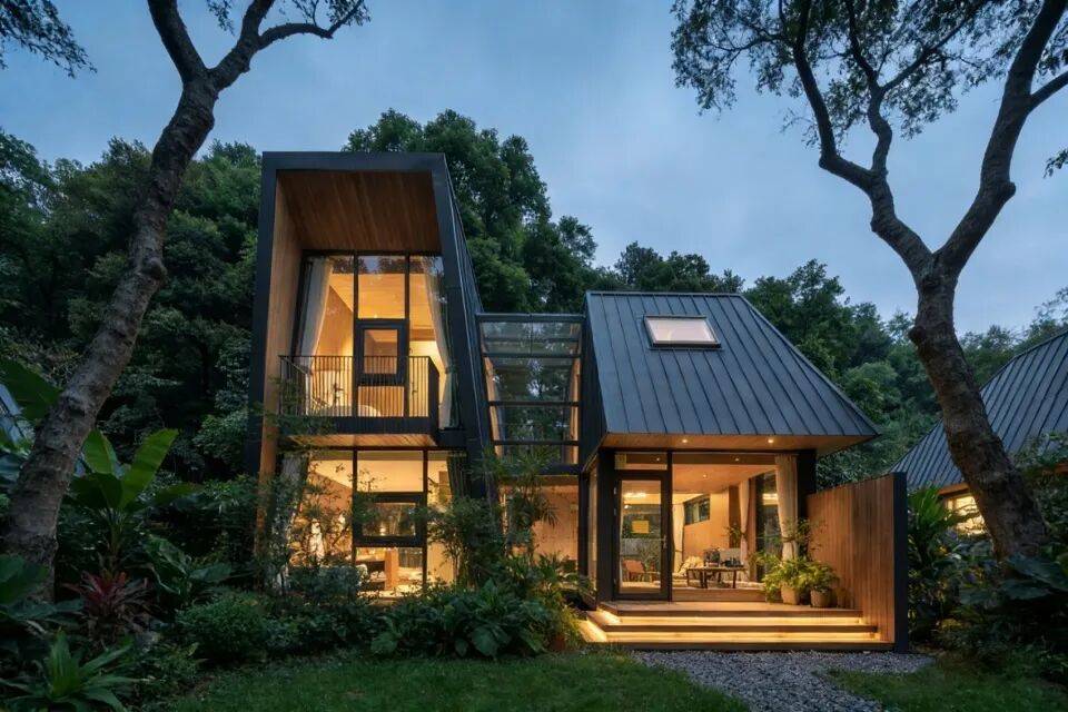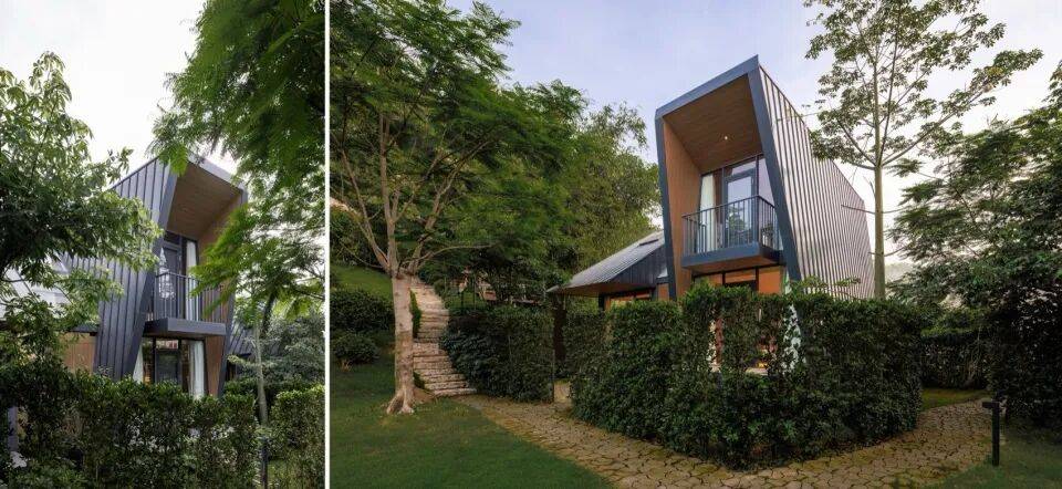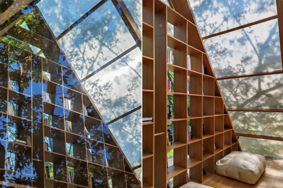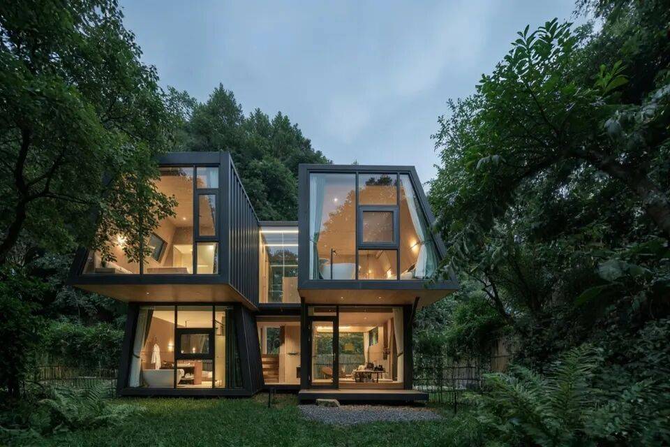 三角几何LOFT树屋:二层落地窗设计,融入森林环境