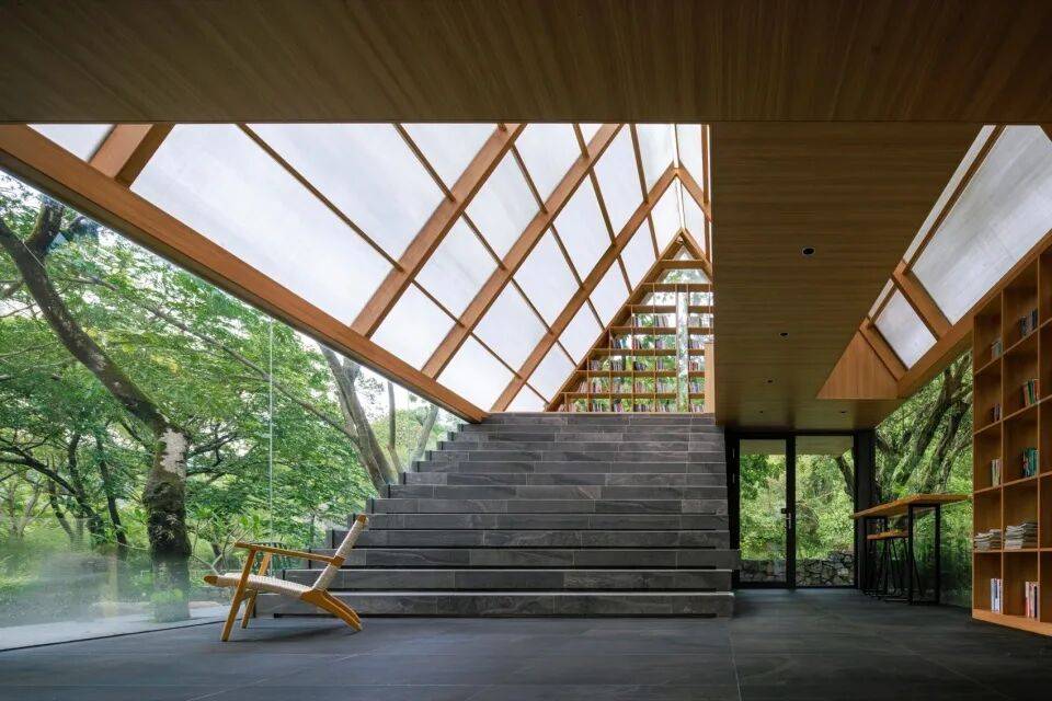 森林之眼:屋顶设置天窗,引入清晨第一缕阳光,成为建筑向天空敞开的呼吸孔;