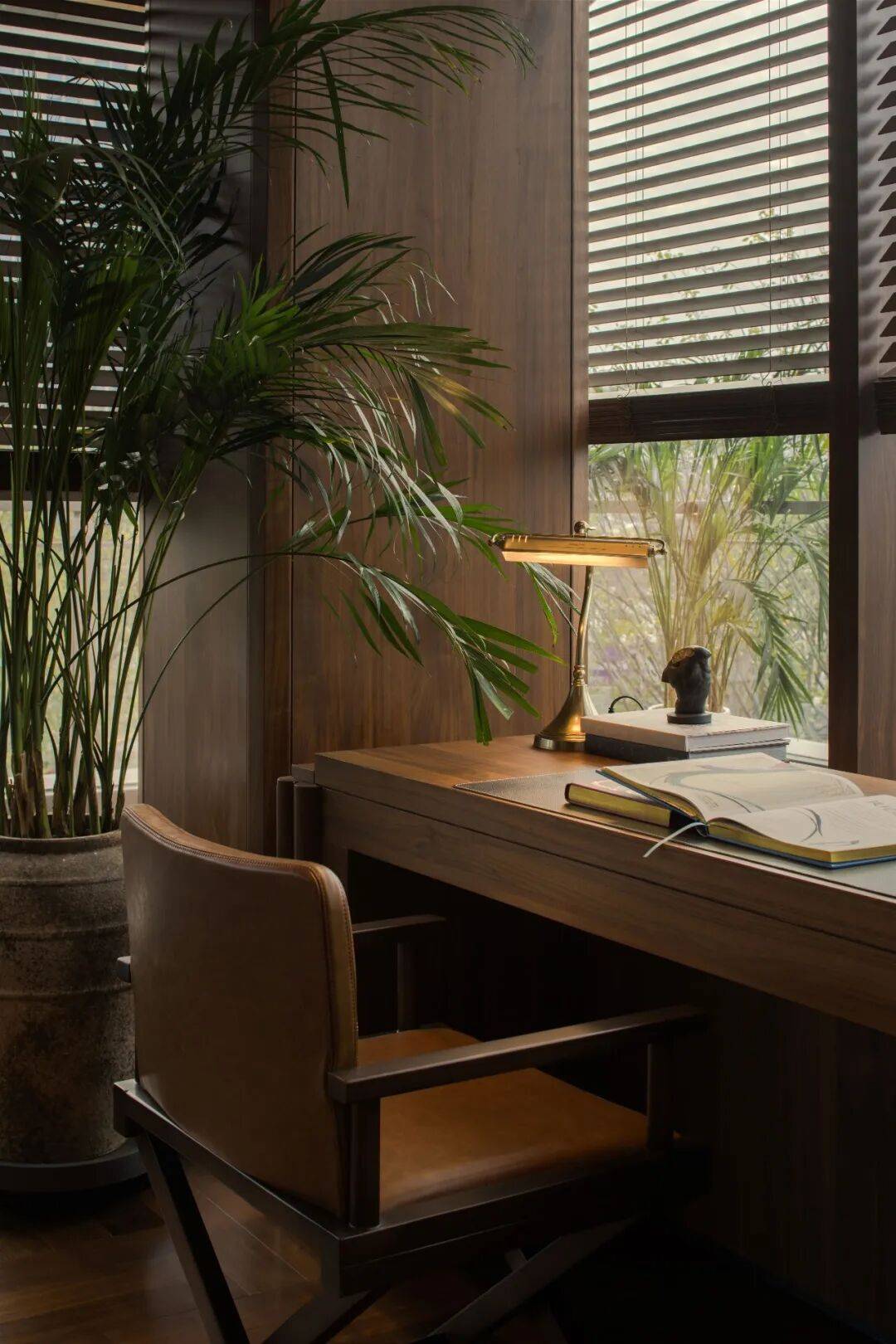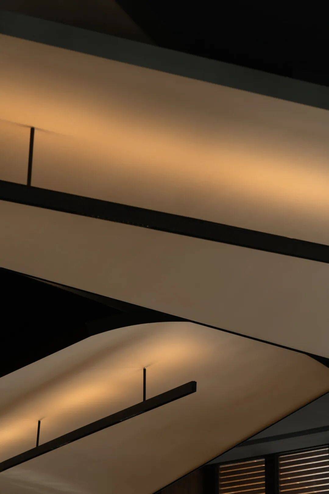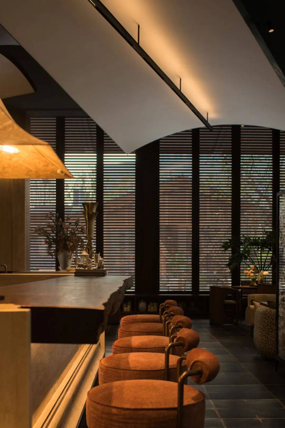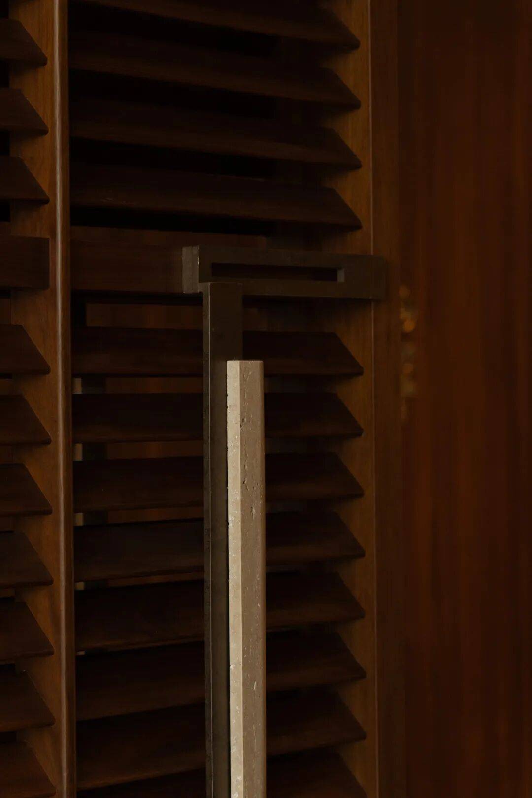 百叶窗引入自然光,使其既是服务节点,也成为节奏转换的停留点。