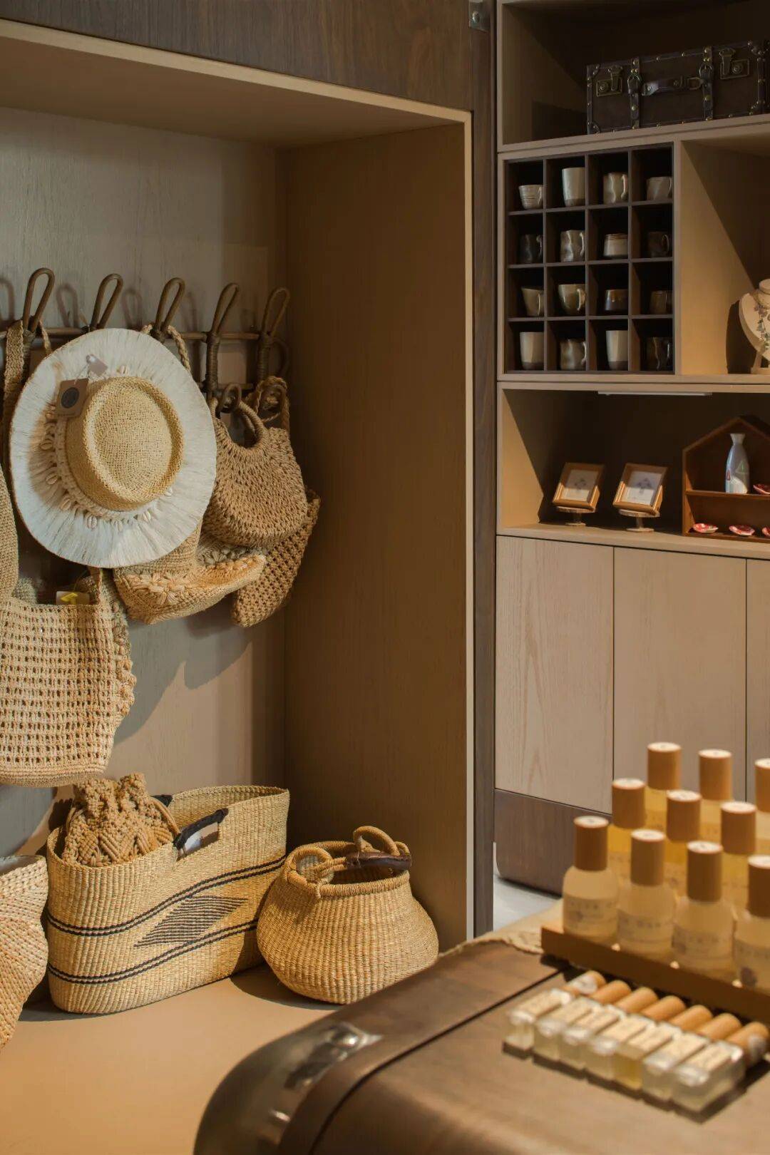 生活杂货铺延续温润松弛语调。木质开放货架以生活化方式铺陈选品,自然材质与手作物件呼应户外区域,形成连续肌理体验。动线与松散陈列让空间更像日常漫步的角落,而非传统商业空间,既承载选品功能,也延续“生活先行”的节奏。