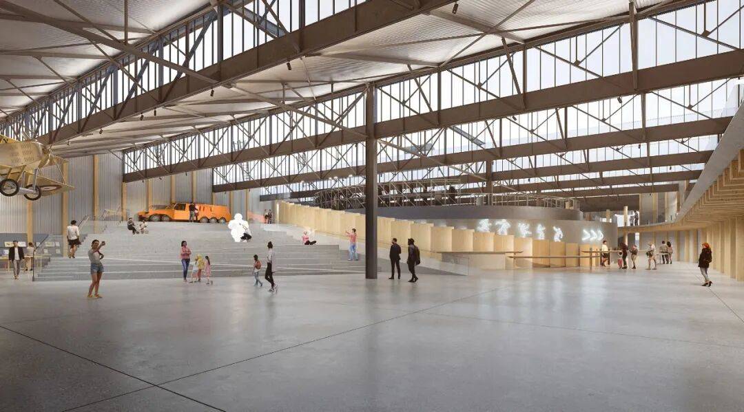 结构保留:完整保留机库金属框架,减少新建建筑的环境负荷;