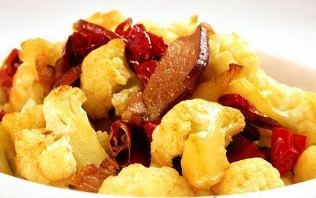 做法:1、花菜洗净手掰成小块,香菇洗净切条;锅中水烧开放入香菇焯水控干水分备用;再把花菜放入煮上2分钟捞出过凉备用;香葱切段、姜切片;干辣椒切段;