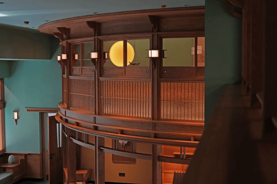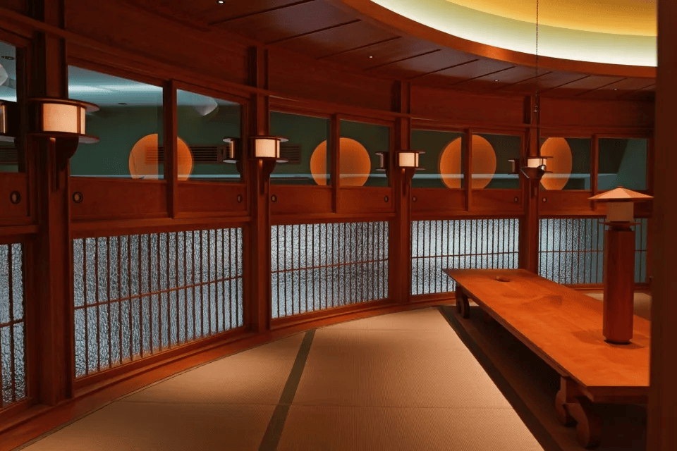 十折玻璃映射月行轨迹:通过玻璃反射营造动态光影效果,增强空间诗意。