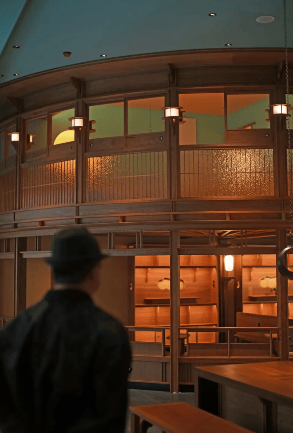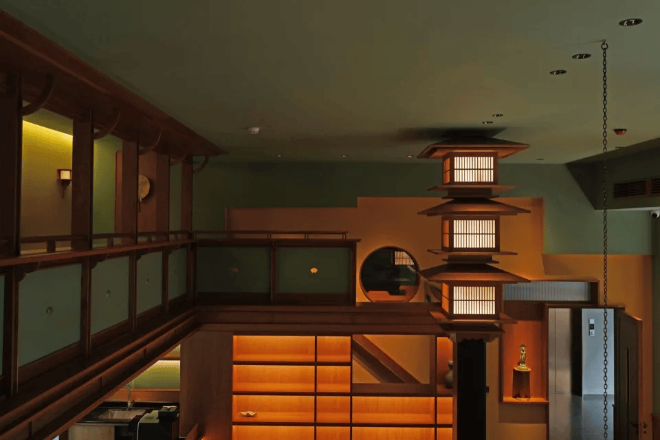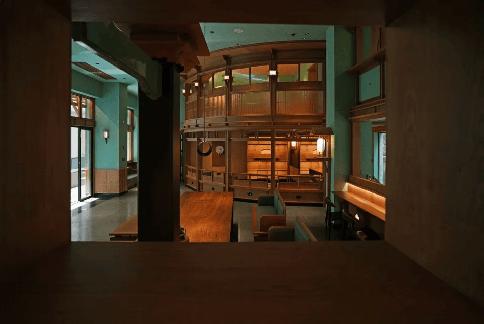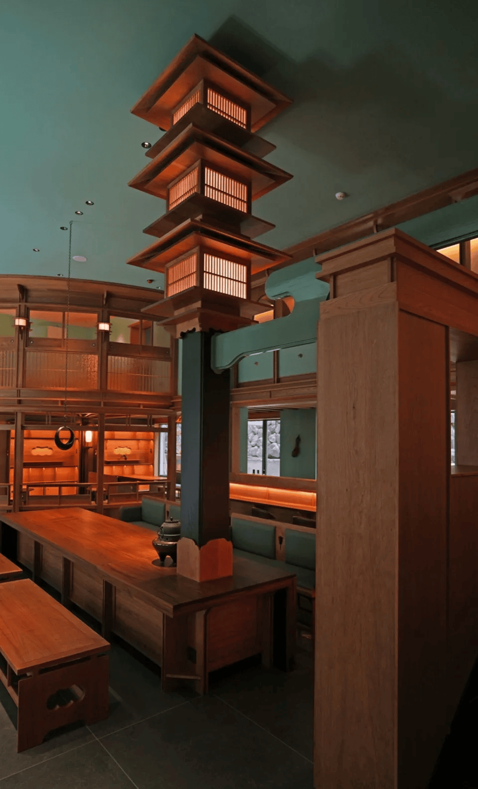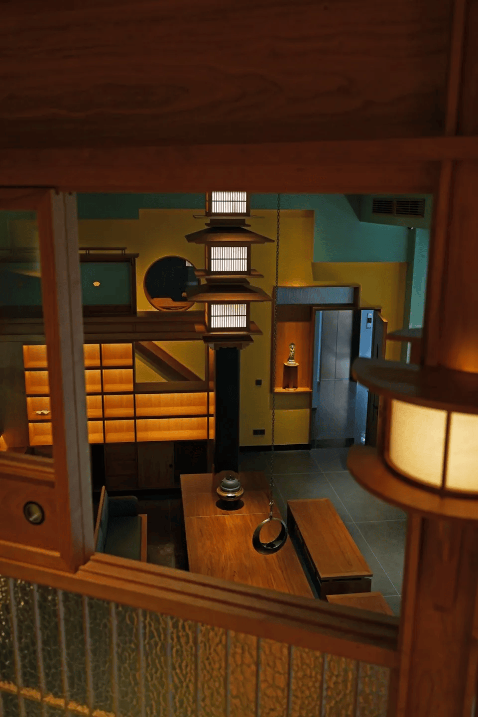 近庭与远山:以“高灯茶台”为视野基点,模拟马远画作中的“近庭”与“远山”关系。高灯作为轴心中枢,通过旋转式推延视界,实现近身与远方的时空互摄。