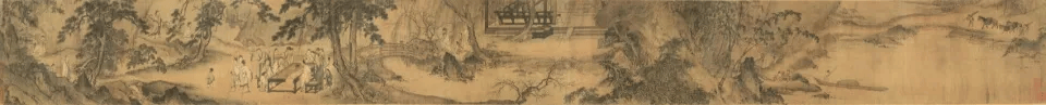 设计特点:以小见大,通过半壁视野与雅集场景构建叙事天地,体现“小品与大观等价”的设计哲学。