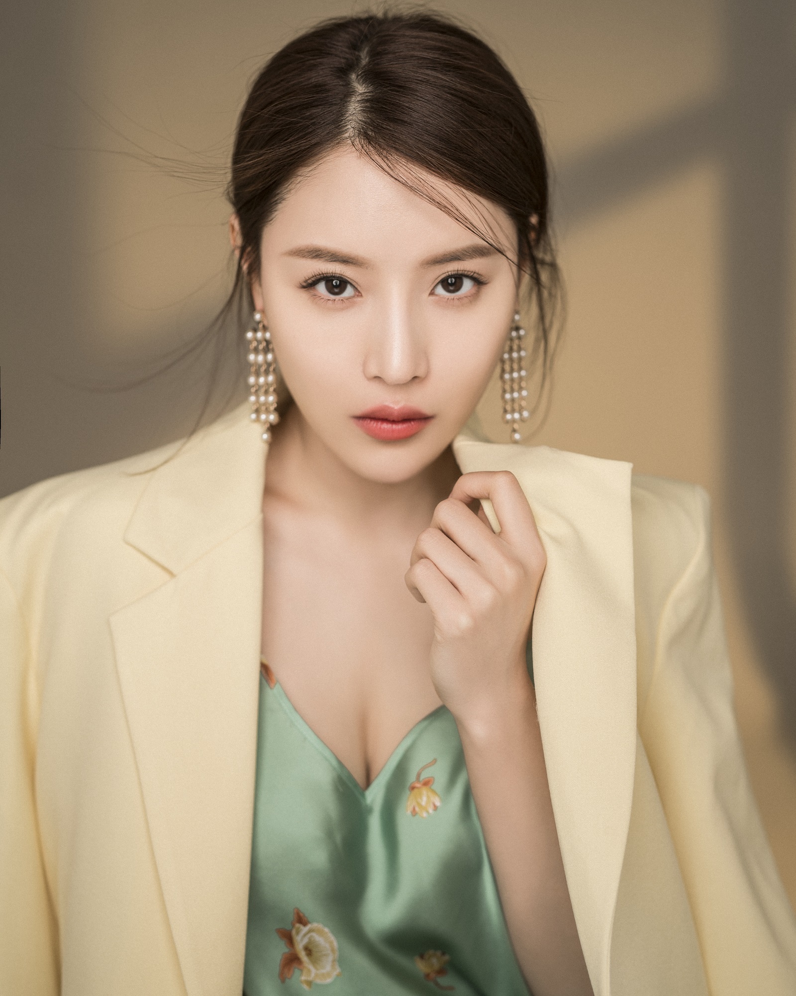 近日,演员蔡蝶释出一组时尚大片。正值六月端午,该套look中蔡蝶身穿淡绿丝绸吊带裙,素雅精致造型不一的花图点缀,尽显高级优雅。而外搭米黄色西装外套,两种色彩犹如粽叶糯米,与端午节日相得益彰。秀发飘逸、淡妆清丽,或眼神坚定直面镜头,侧转回眸尽现五官立体;或双臂自然搭放,轻侧下颌展曼妙身姿,素净无声却神色有形,散发浓浓清新夏日的气息,展现时髦质感的女性魅力。