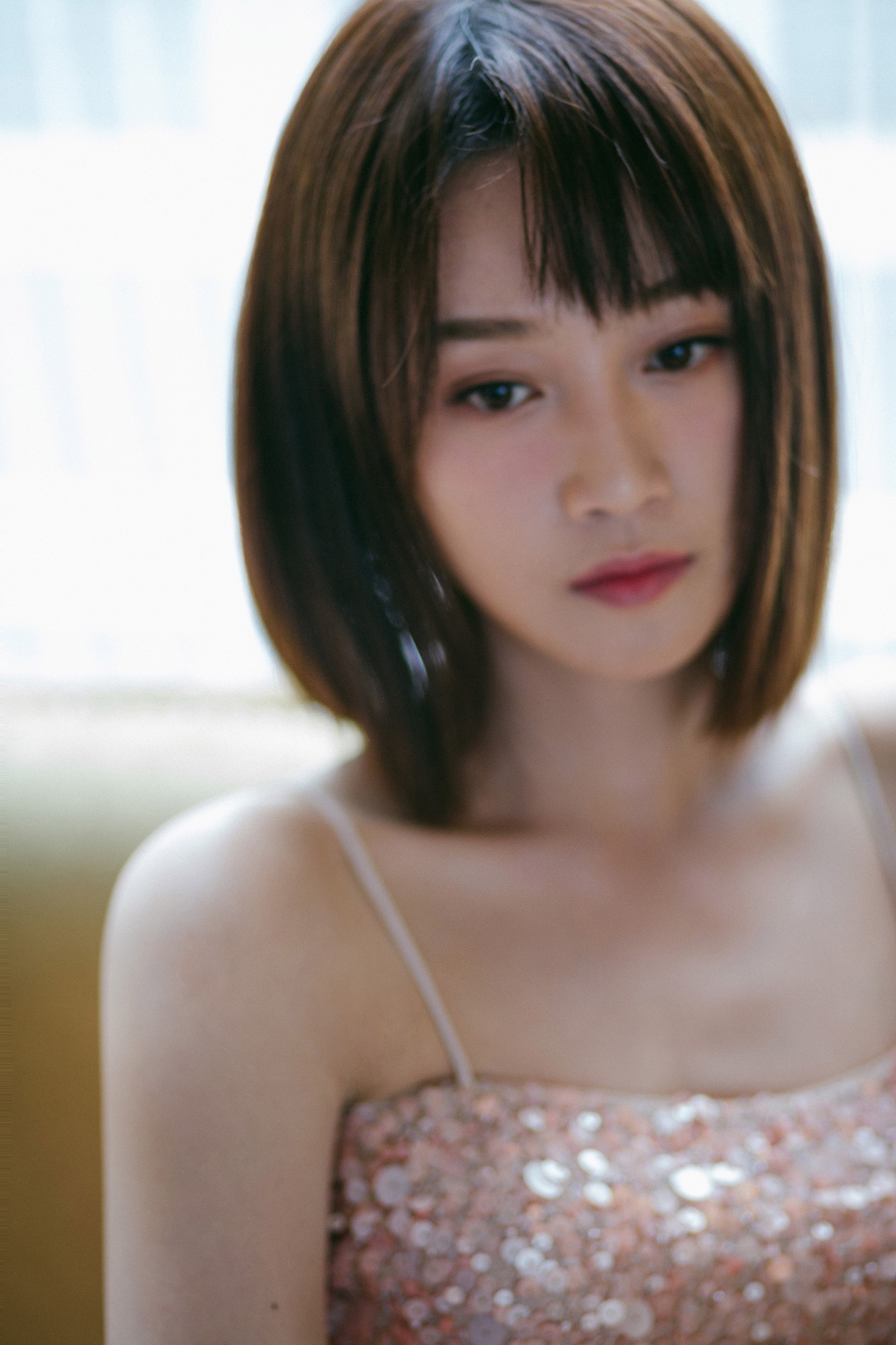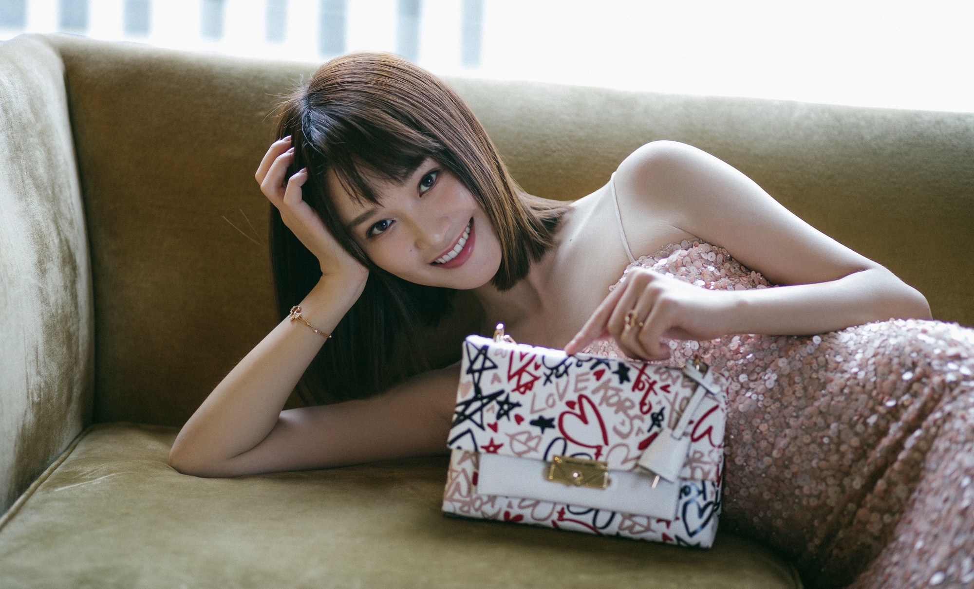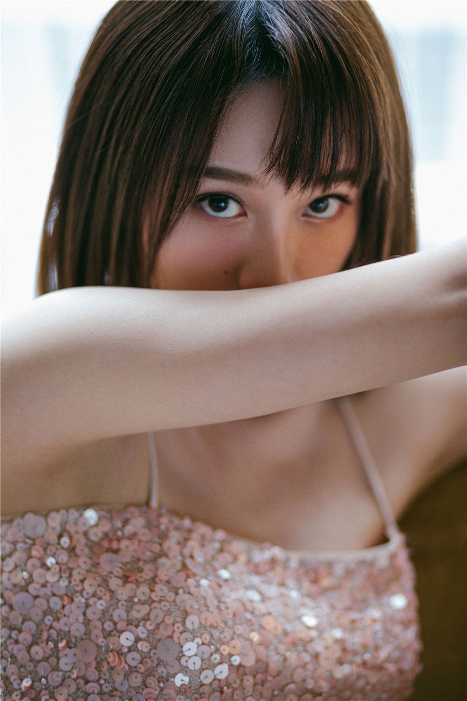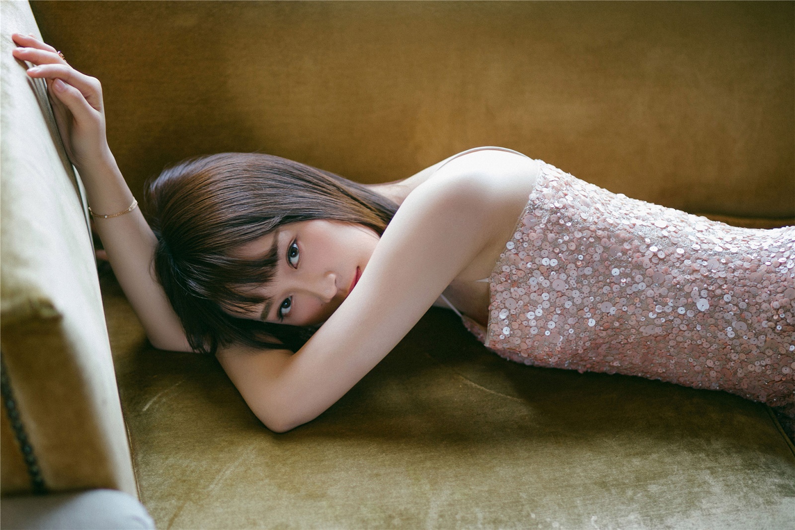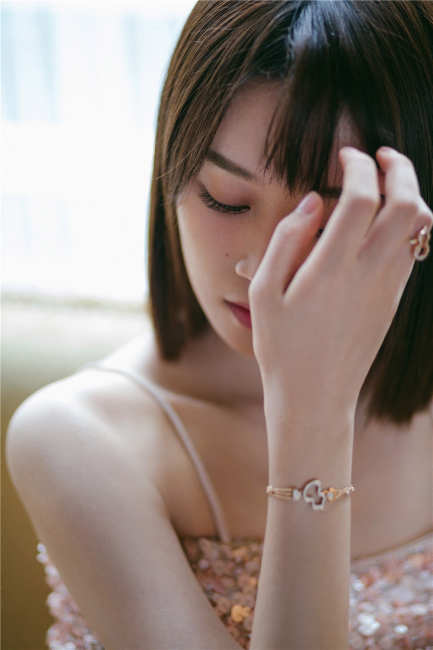 蓝盈莹裸粉色亮片长裙似人鱼 简约优雅彰显夏日浪漫气质[6P]