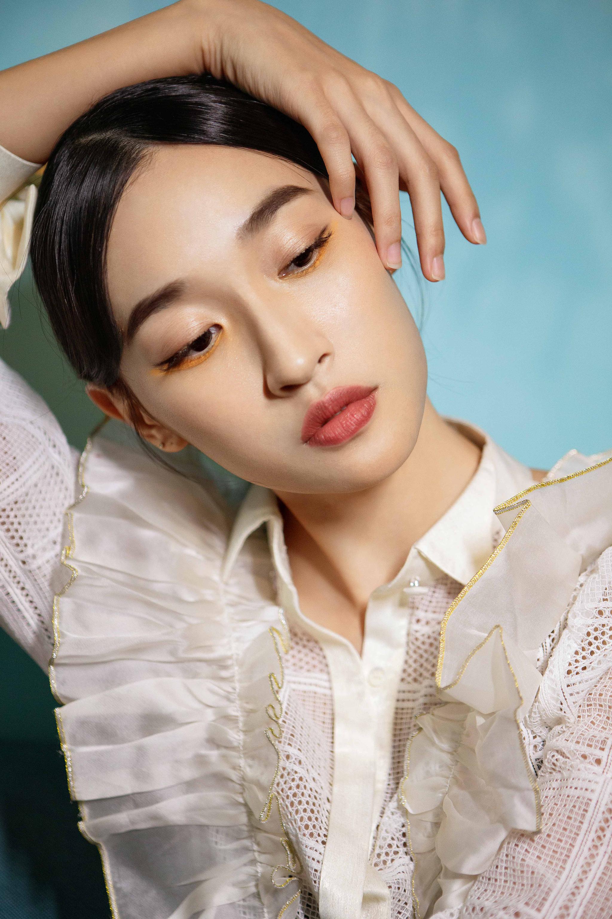 张馨比时尚大片曝光 珍珠发夹和橘色眼影尤获好评[6P]