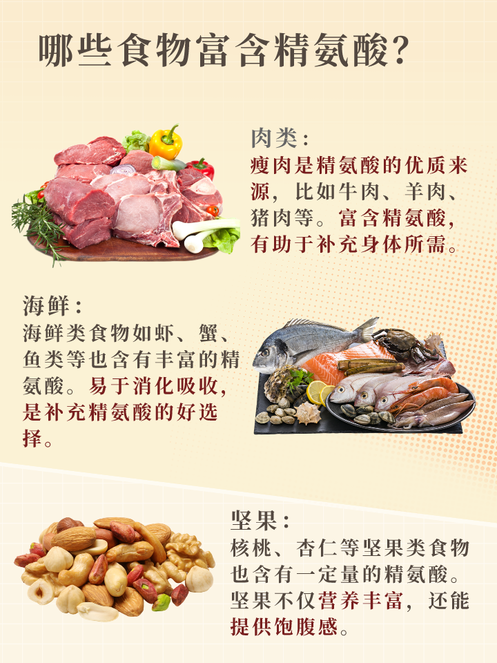 富含精氨酸的食物:精氨酸是一氧化氮合成的底物,可以通过食用肉类、鱼类、奶制品等食物来增加体内的精氨酸含量。